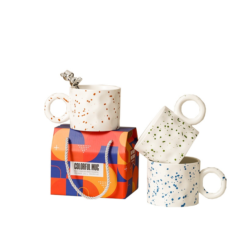 Style Spray-dot Ink-splashed Ceramic Mug Set High-value Opening Event Souvenir Cup Gift Box
