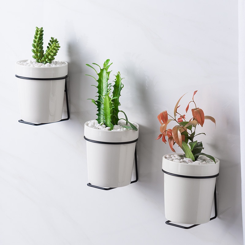 Simple Ceramic Flower Pot Wall-mounted Succulent Potted Balcony Green Plant Flower Pot Creative Decoration