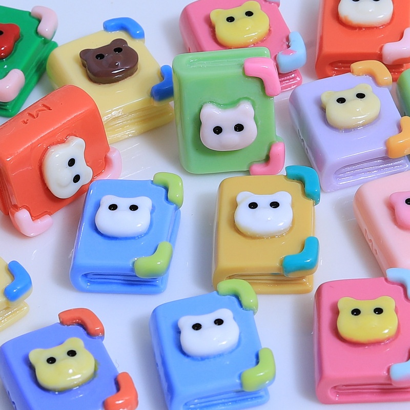 Mini Colorful Bear Book Nail Art Childlike DIYCream Glue Mobile Phone Case Headdress Hairpin Jewelry Resin Accessories