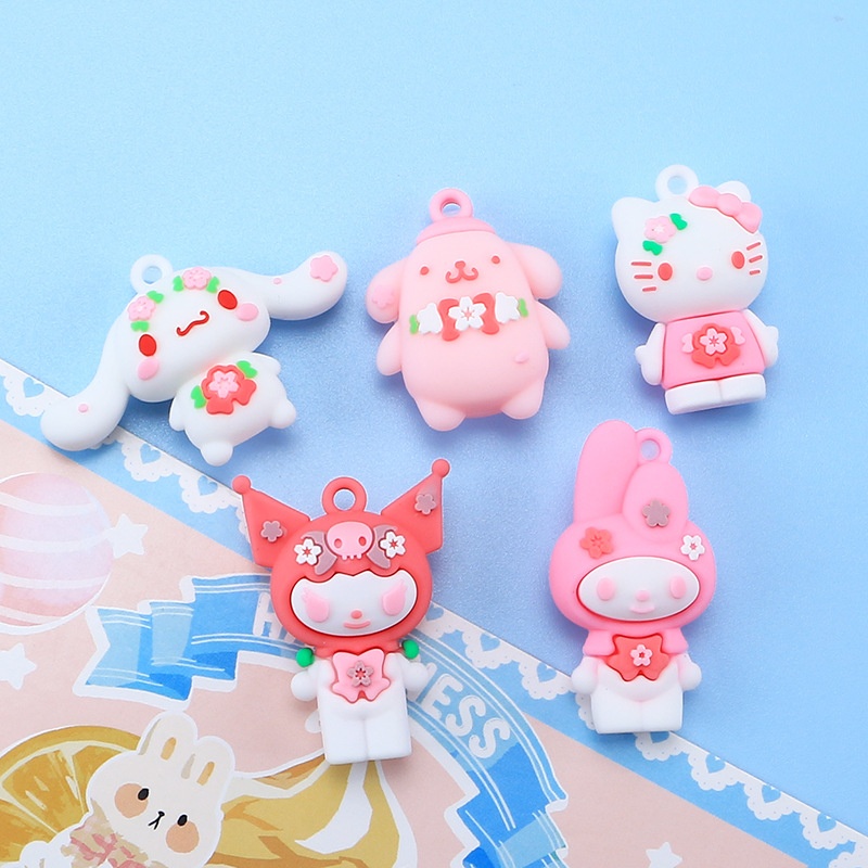 Sakura Small Animal Doll Cute Diy Cream Glue Mobile Phone Case Headdress Keychain Jewelry Resin Accessories