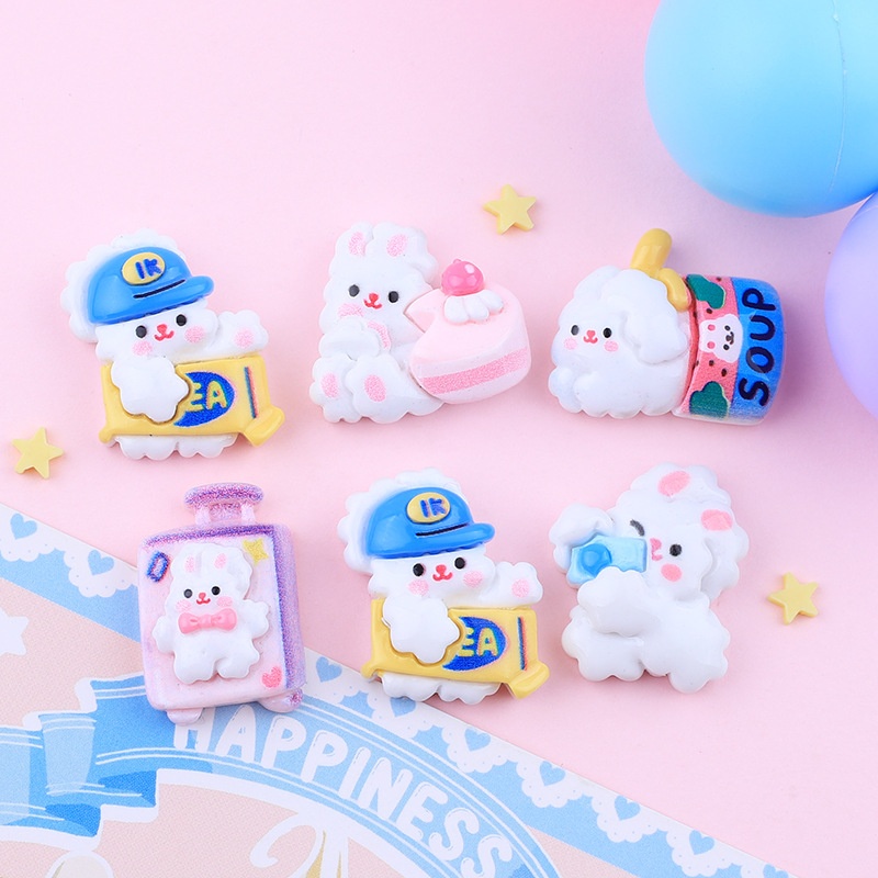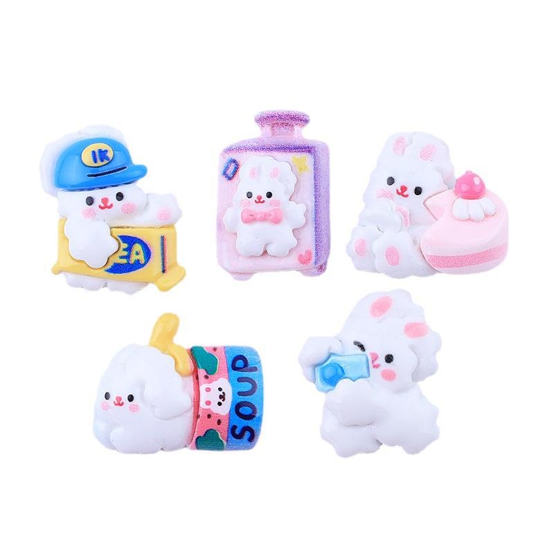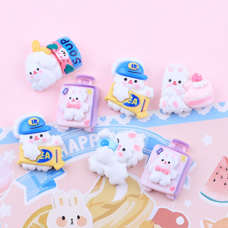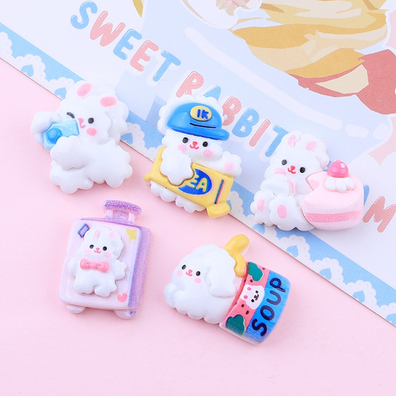 Shiny Little White Rabbit Cute DIYCream Glue Homemade Mobile Phone Case Refrigerator Magnet Hairpin Jewelry Resin Accessories