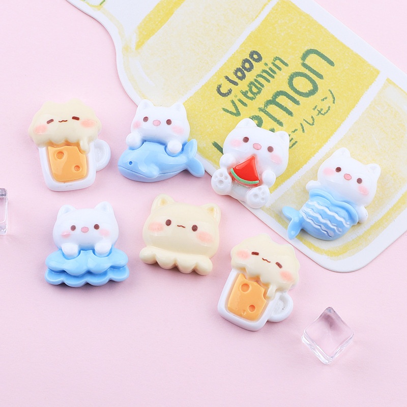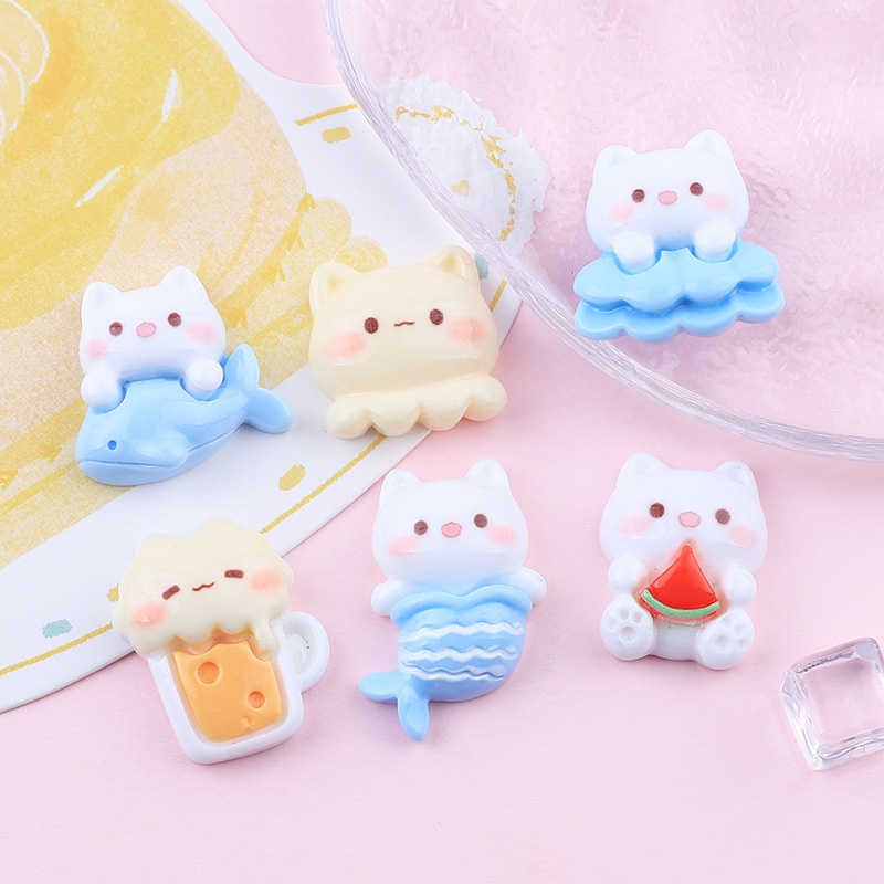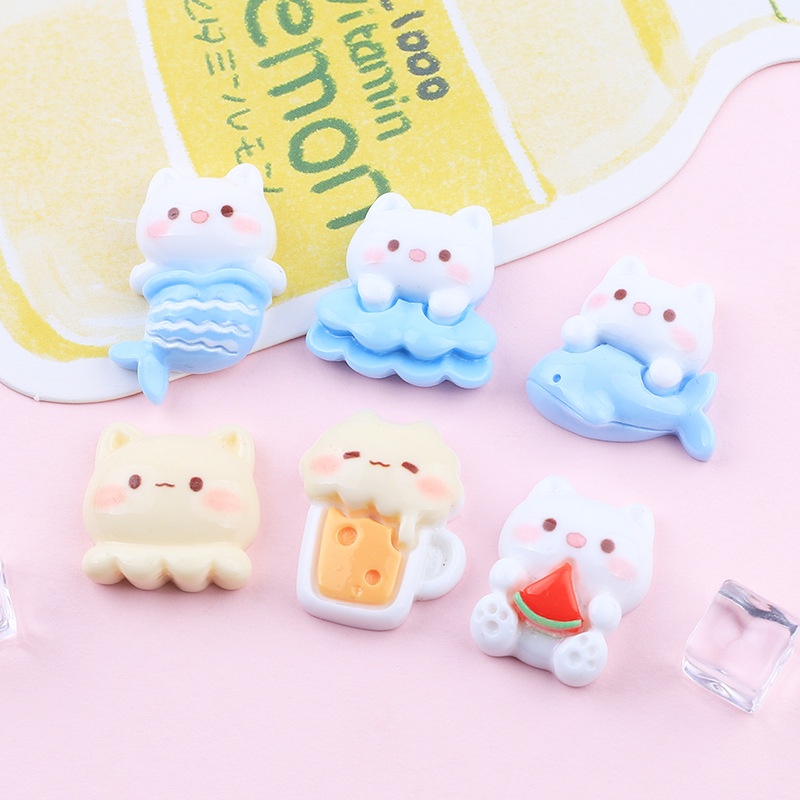 Bright Seaside Little White Cat DIYCream Glue Homemade Mobile Phone Case Headdress Hairpin Jewelry Resin Accessories