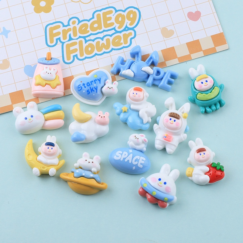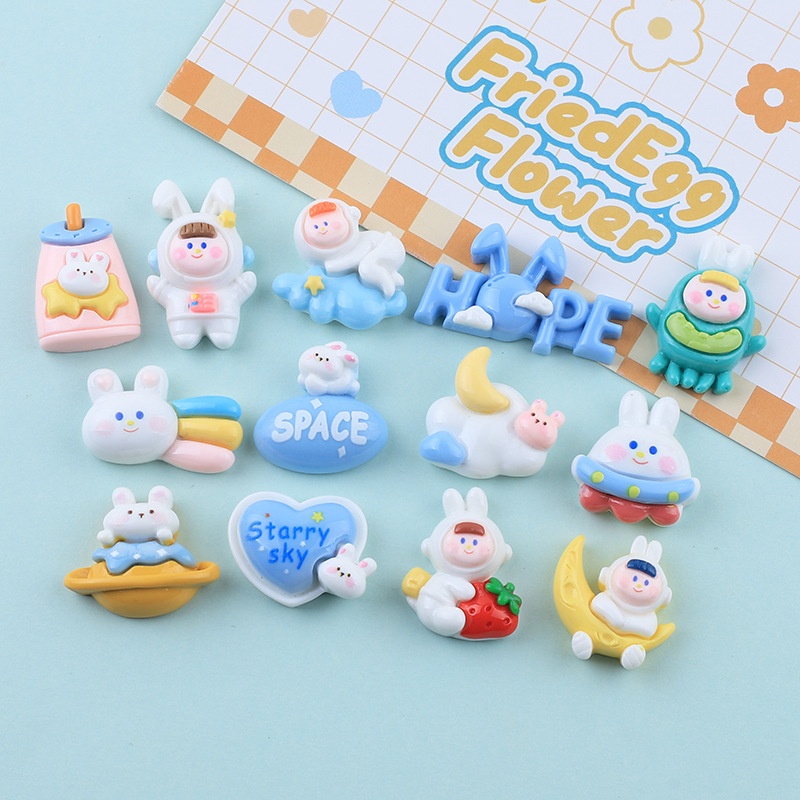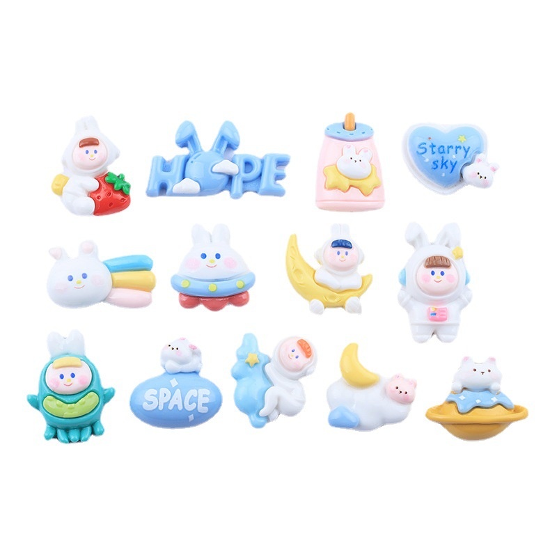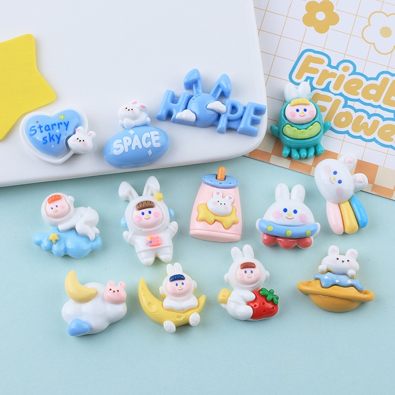 Shiny Cute Space Rabbit Cartoon Diy Cream Glue Mobile Phone Case Refrigerator Magnet Hairpin Jewelry Resin Accessories