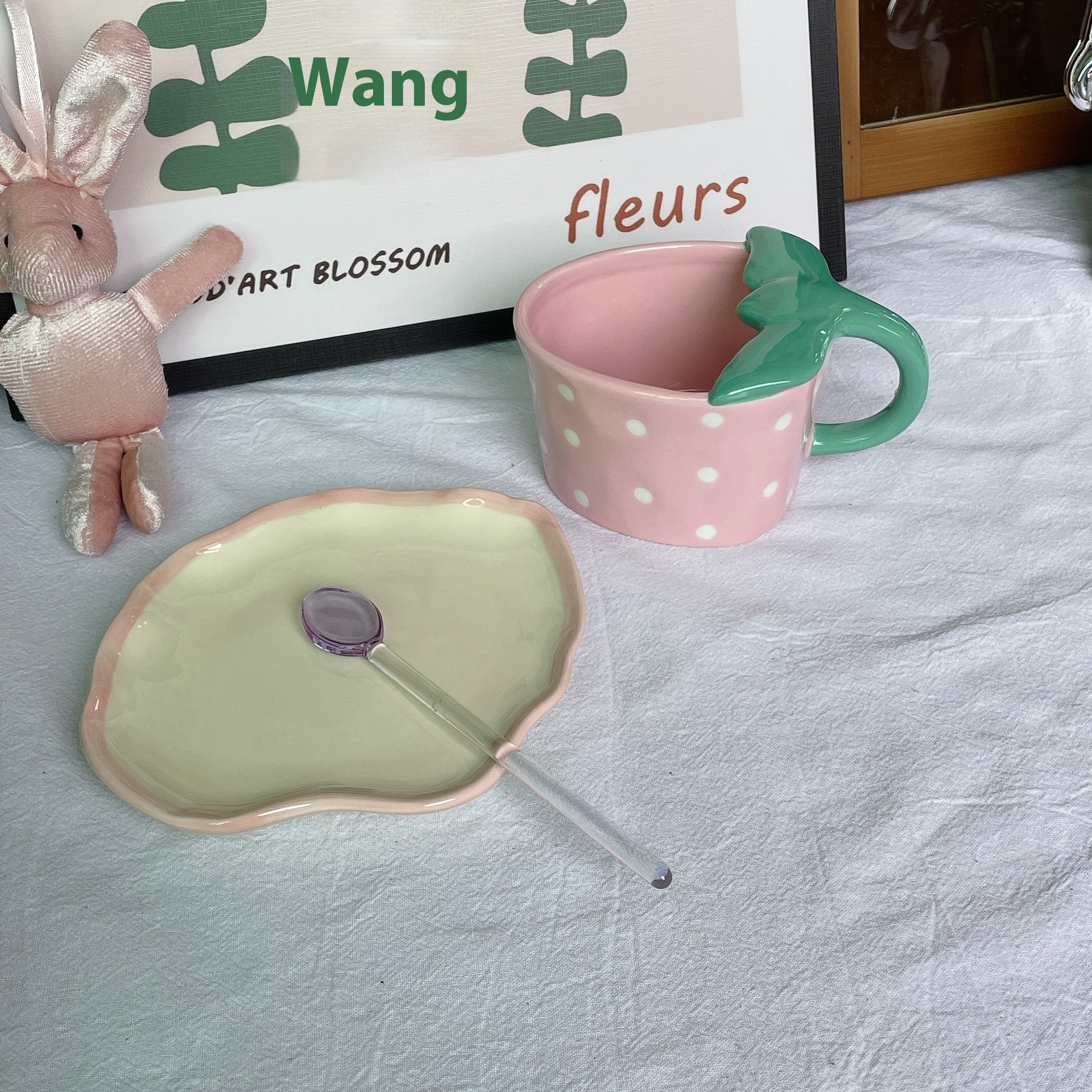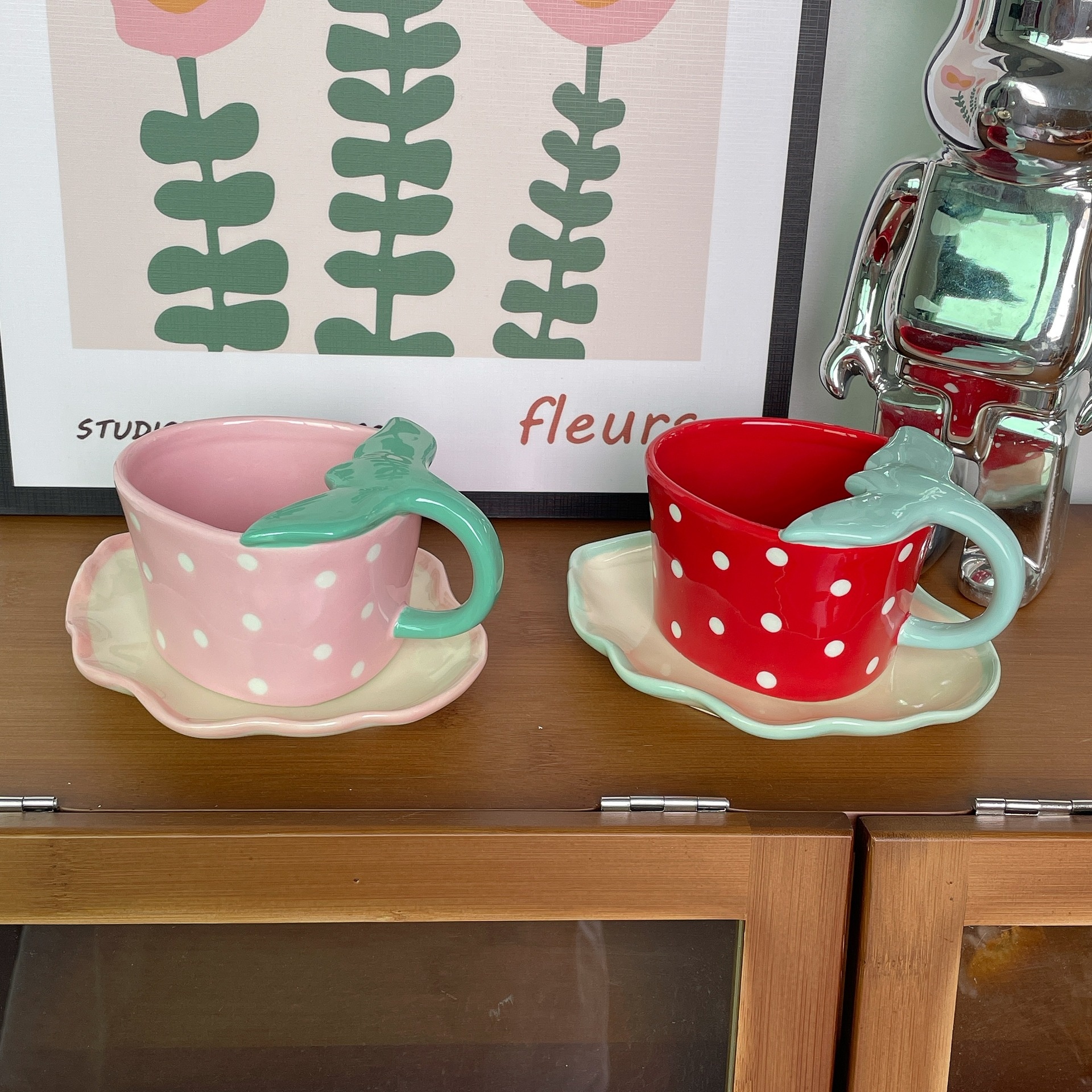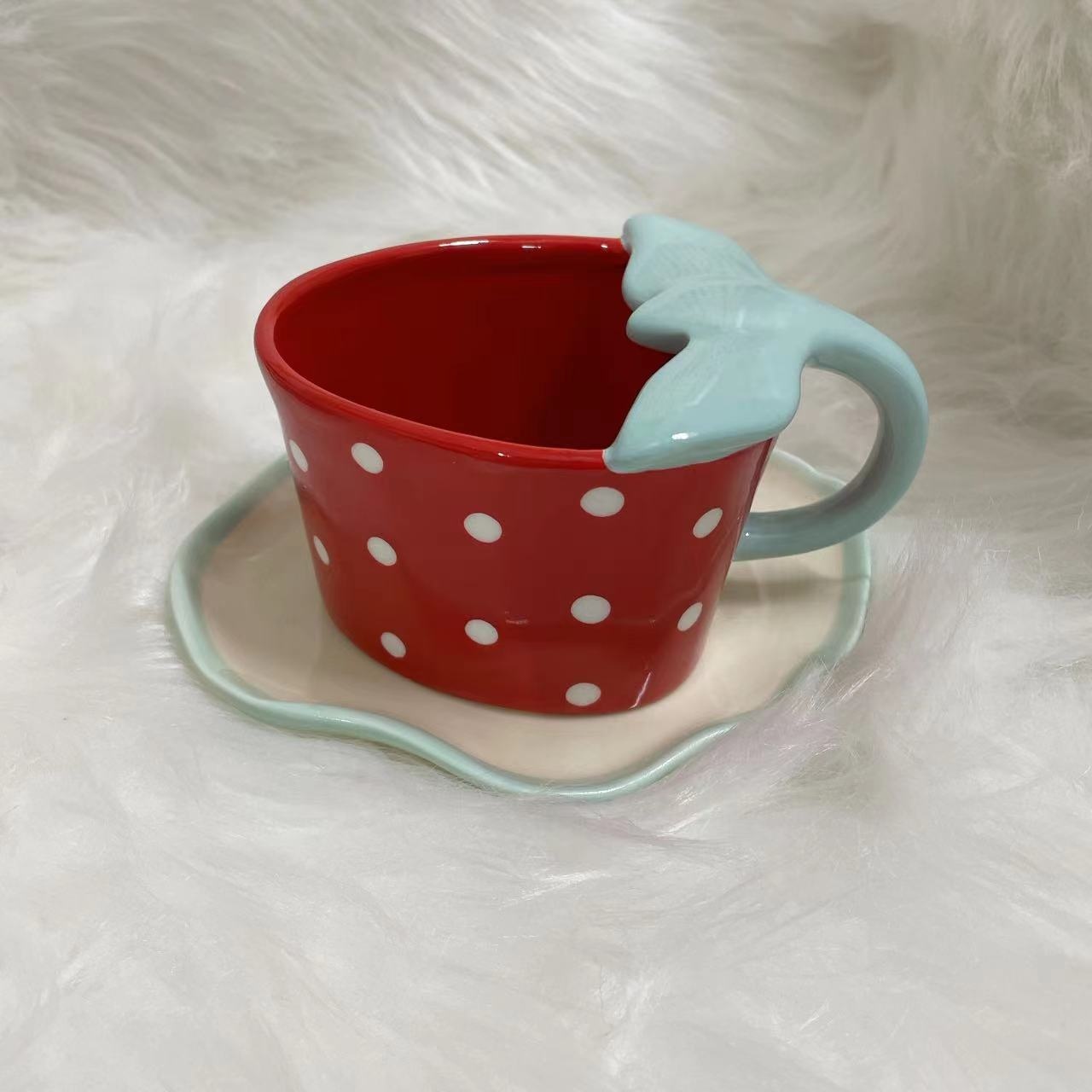 Korean Export Hand-painted Strawberry Ceramic Coffee Cup Saucer Children's Breakfast Cup Cute Water Cup Cartoon Milk Cup With Saucer