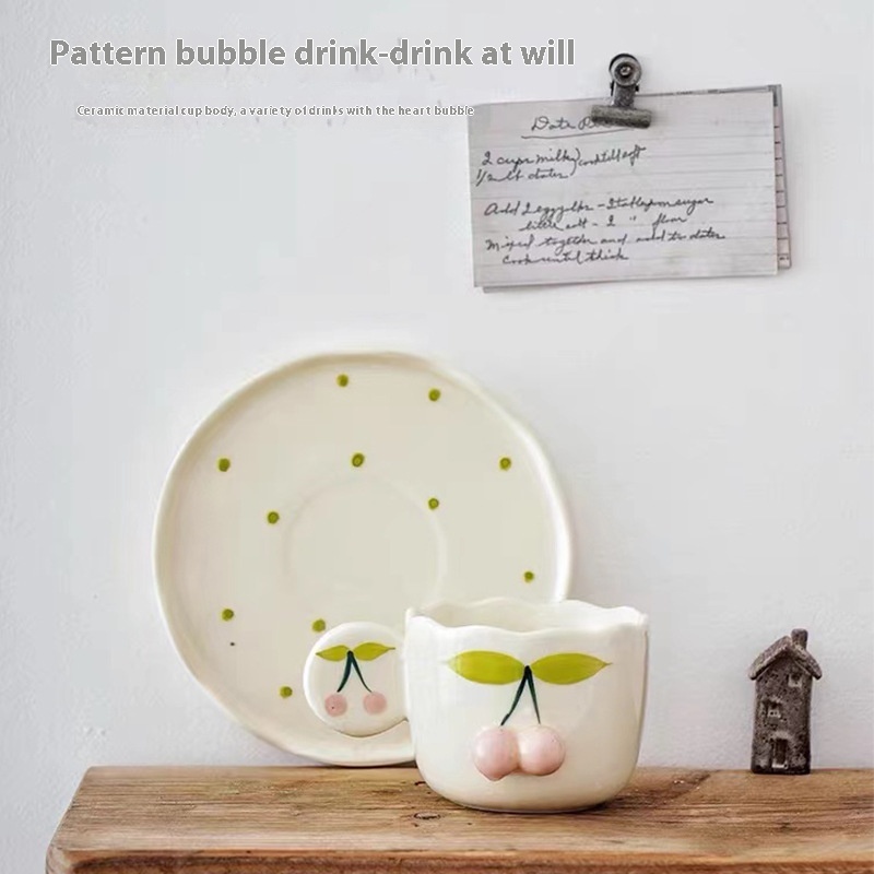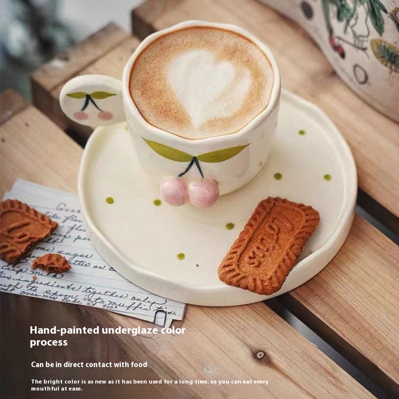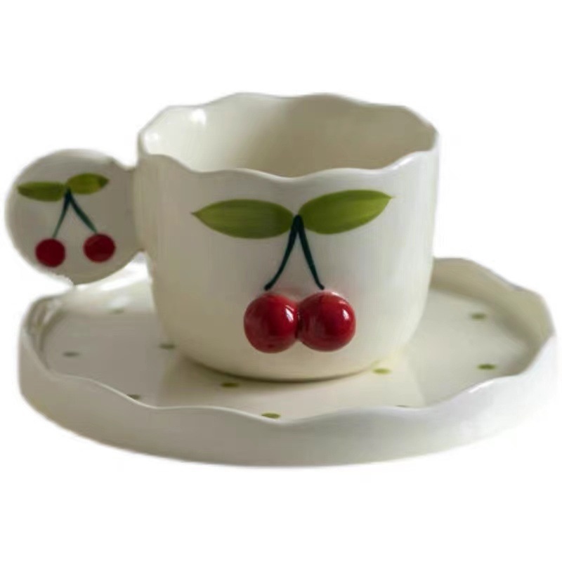 Milk FUFUHand-painted Embossed Cherry Ceramic Cup And Saucer Niche Design Home Ceramic Water Cup Mug Cup With Tray