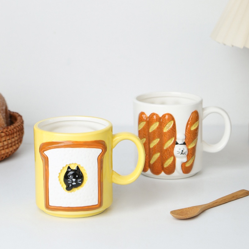 Japanese Style Ceramic Bread Cat Mug Cute Toast Milk Oatmeal Cup Creative Water Cup High Value Breakfast Cup