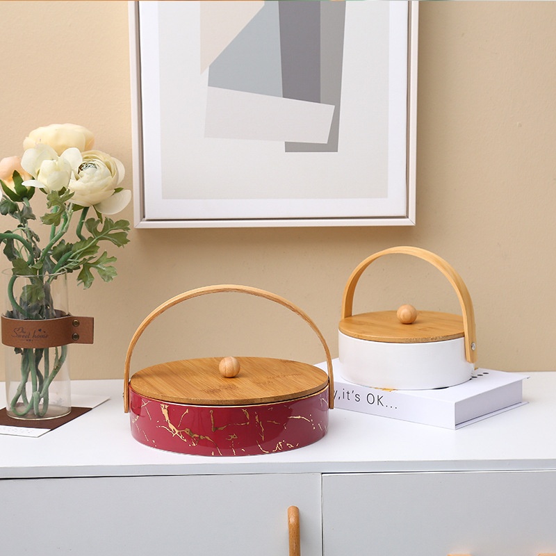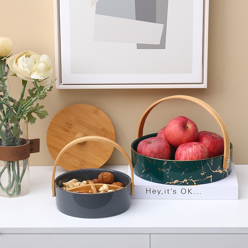 SNordic Creative Portable Ceramic Divided Fruit Plate With Lid Household Snack Plate Nut Plate Dried Fruit Platter
