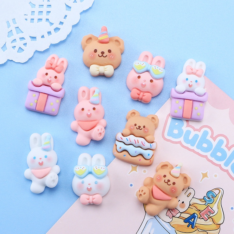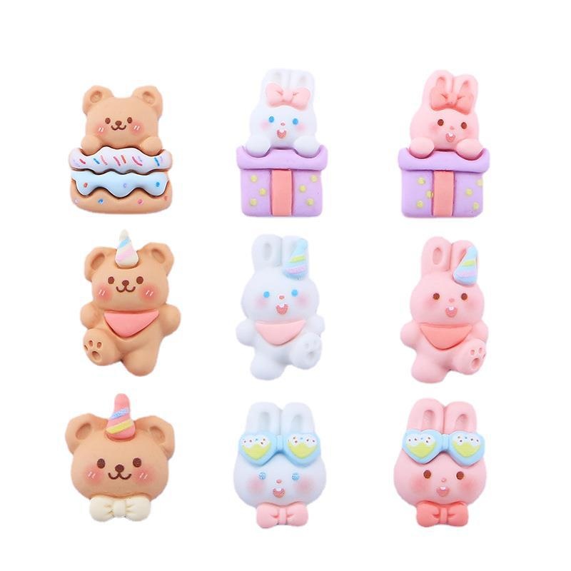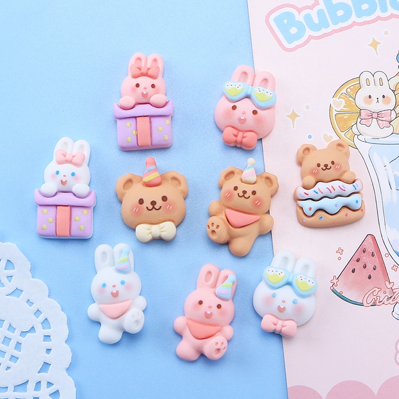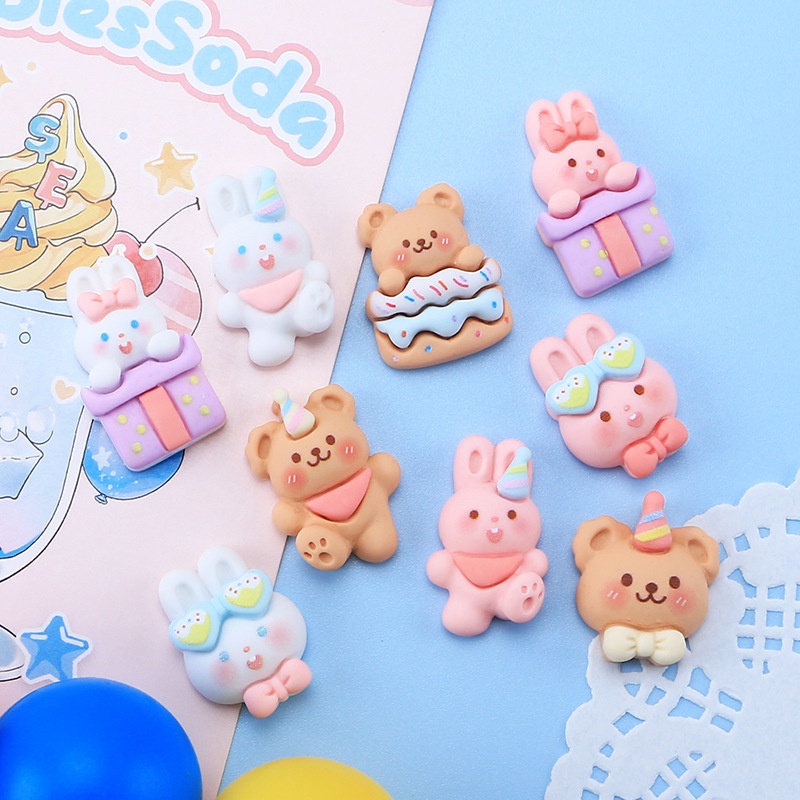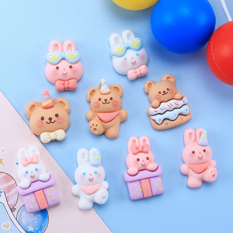 Cartoon Birthday Bear Rabbit Cute Diy Cream Glue Mobile Phone Case Refrigerator Magnet Hairpin Jewelry Resin Accessories