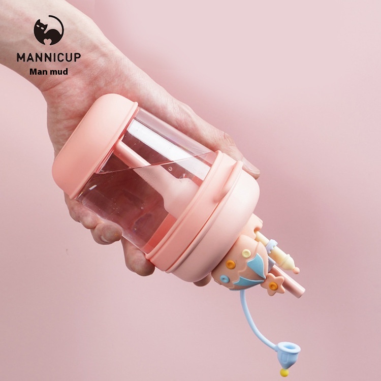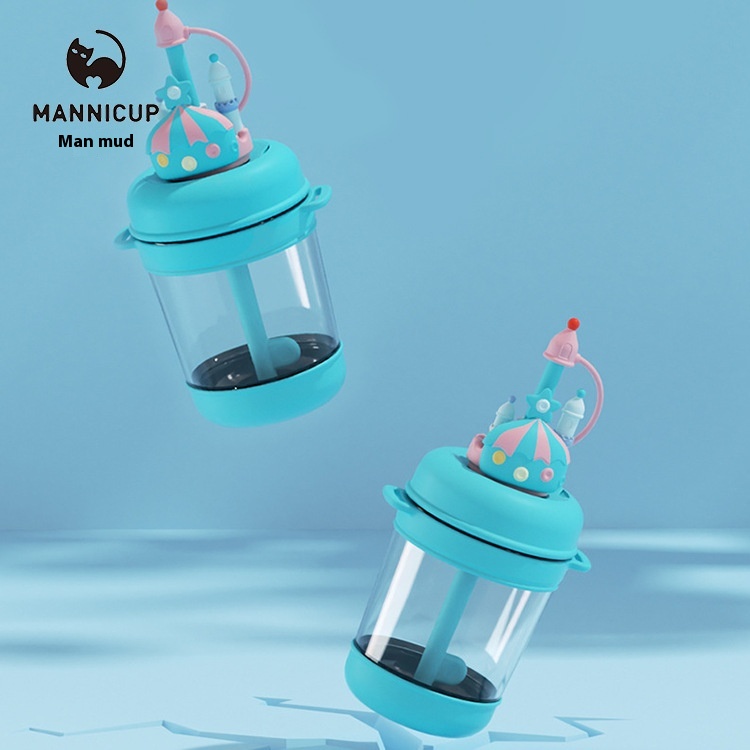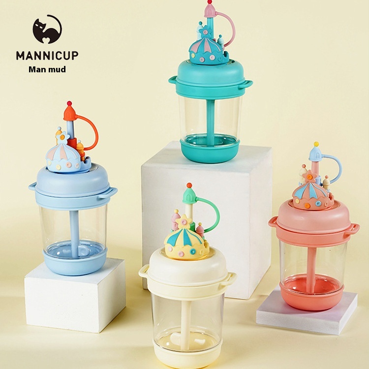 Manni Children's Dream Castle Creative Plastic Straw Cup Cartoon Portable Student Cute Water Cup Diagonal