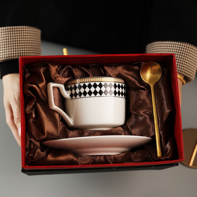 Simple European Style Gold-rimmed Ceramic Coffee Cup,Saucer And Spoon Set Creative Luxury Afternoon Tea Hotel Restaurant Coffee Set