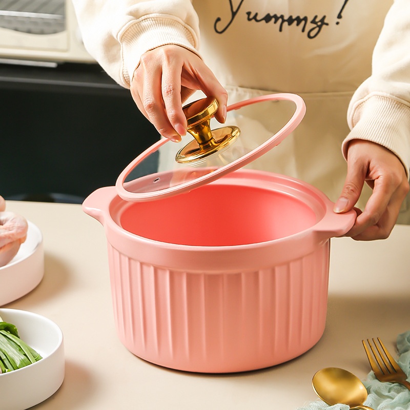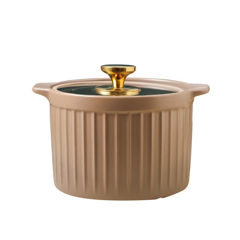 Creative Matte Glaze Ceramic Casserole With Glass Lid Vertical Pattern Simple High Temperature Resistant Open Fire Household Stew Pot