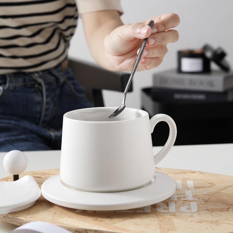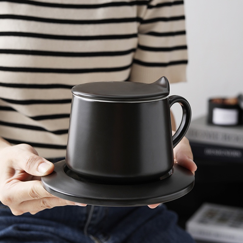 Creative Matte Glaze Ceramic Coffee Cup With Base Simple Large Capacity Cup And Saucer Tea Table Restaurant Household Utensils Set