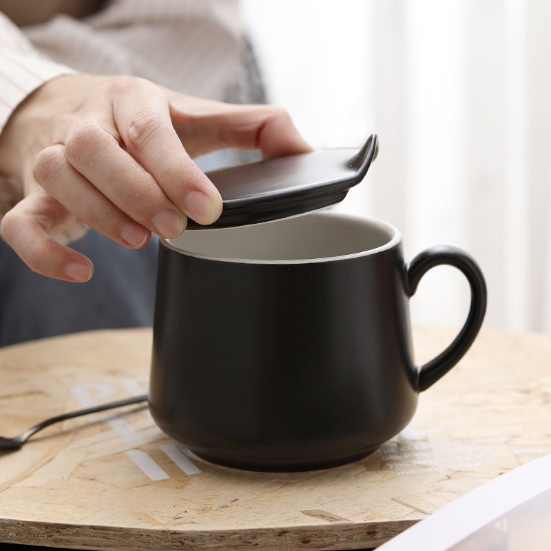 Simple Matte Glaze Ceramic Coffee Cup With Lid Creative Frosted Mug Cafe Restaurant Hotel Gift Porcelain