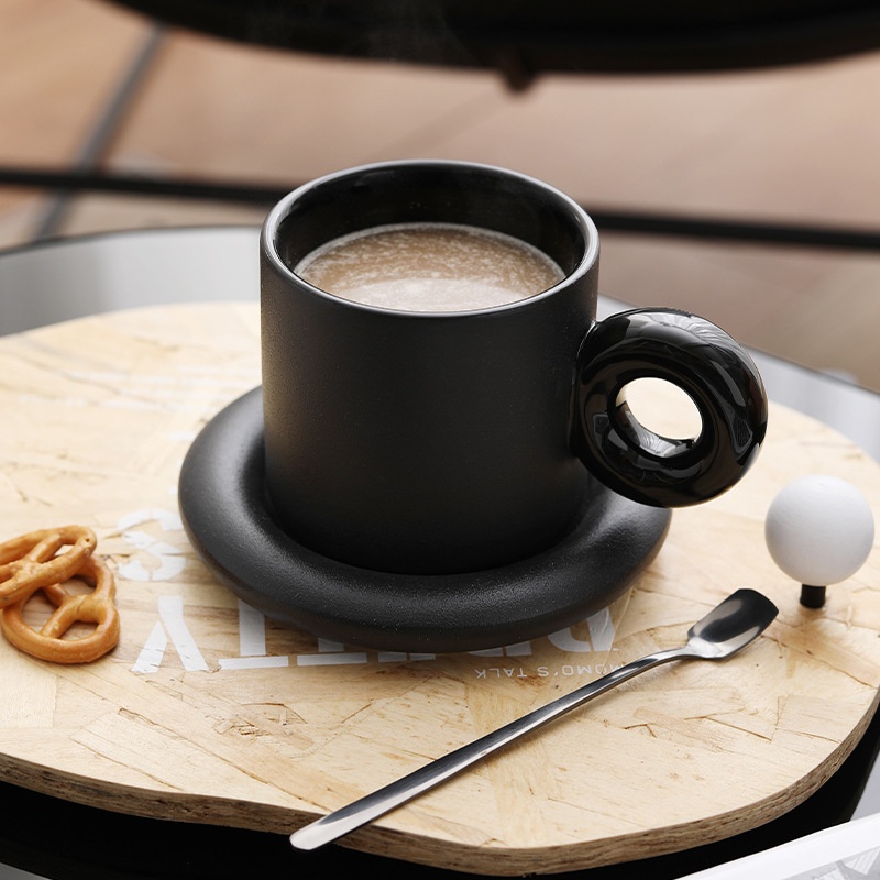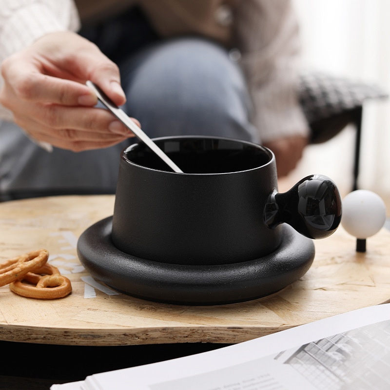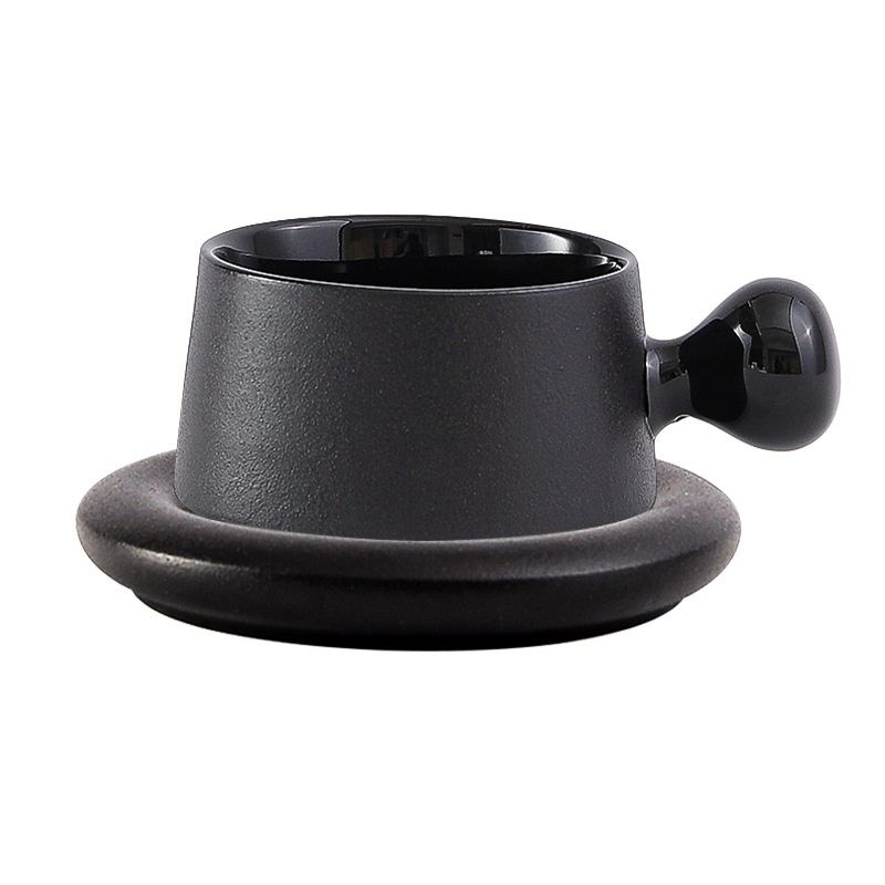 Nordic Simple Matte Black Glaze Ceramic Coffee Cup And Saucer Creative Coffee Cup Holder Home Cafe Restaurant Set
