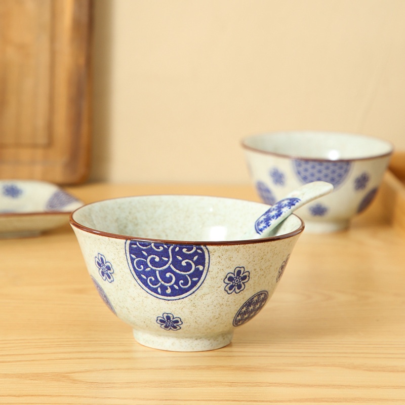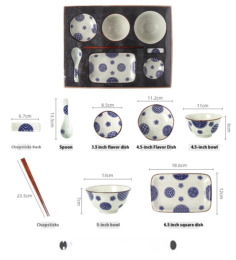 Japanese Style Ceramic Tableware Set Household Creative European Bowls,Plates,Spoons,Underglaze Printing Restaurant Combination Set