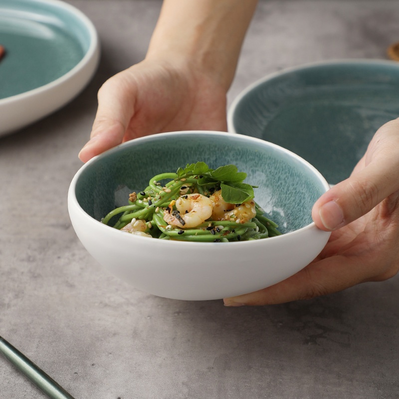 Creative Japanese And Korean Style Ceramic Tableware Set Kiln Glaze Changes To Dark Green Ceramic Rice Bowl Soup Plate Dish Restaurant Hotel Tabletop