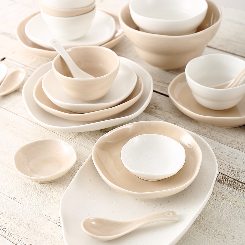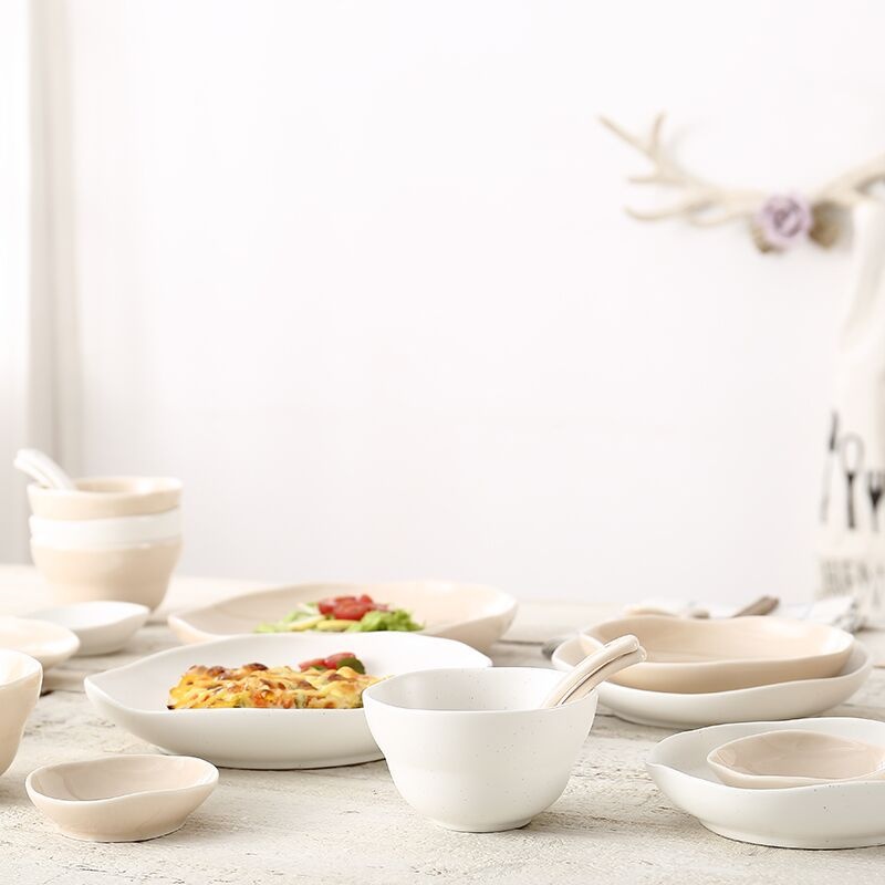 European Style Simple Colored Glaze Ceramic Tableware Set Creative Art Wave Rice Soup Bowl Plate Spoon Home Restaurant