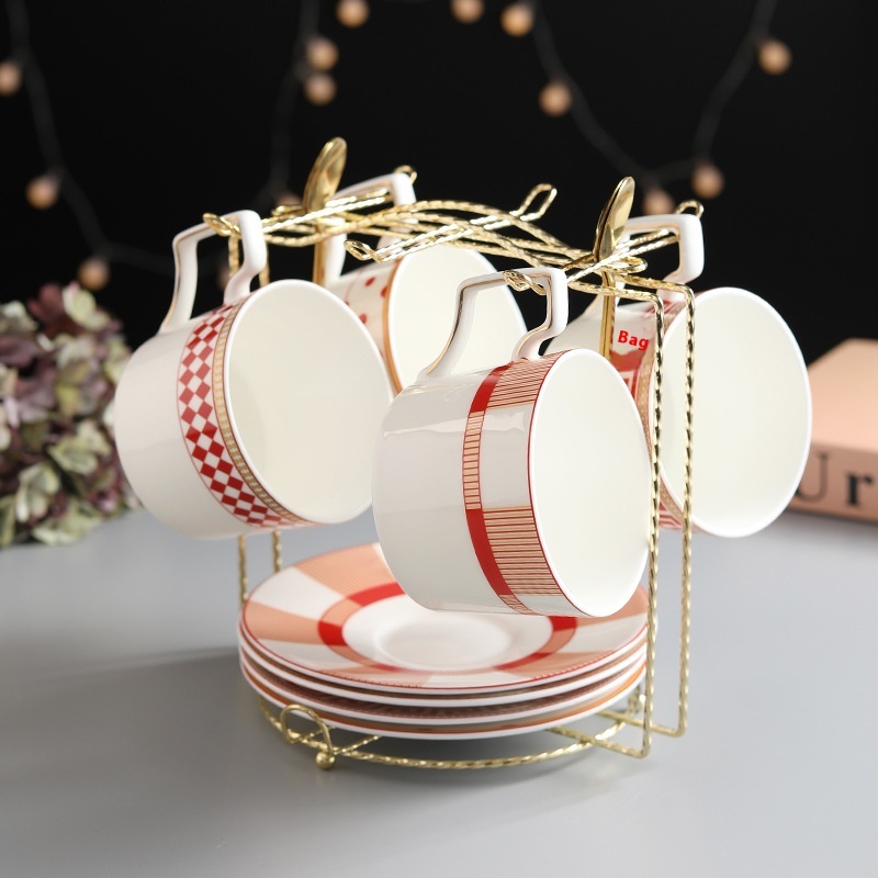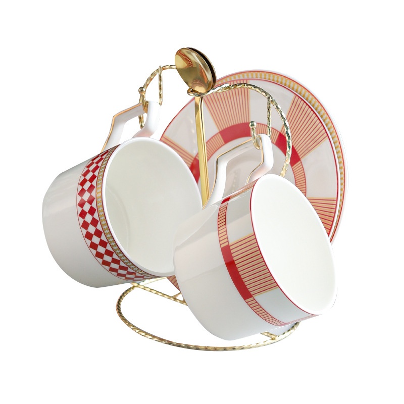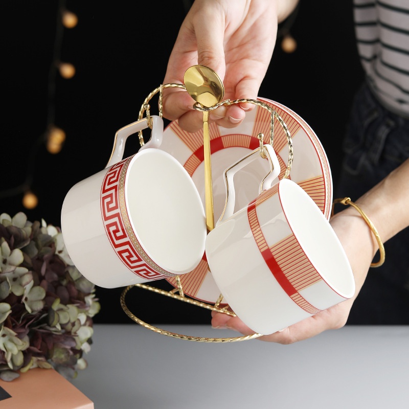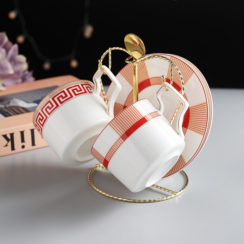 Nordic Light Luxury Coffee Cup,Saucer And Spoon Set Simple Ceramic Bone China Coffee Set Gold Cup Holder Restaurant Hotel Gift