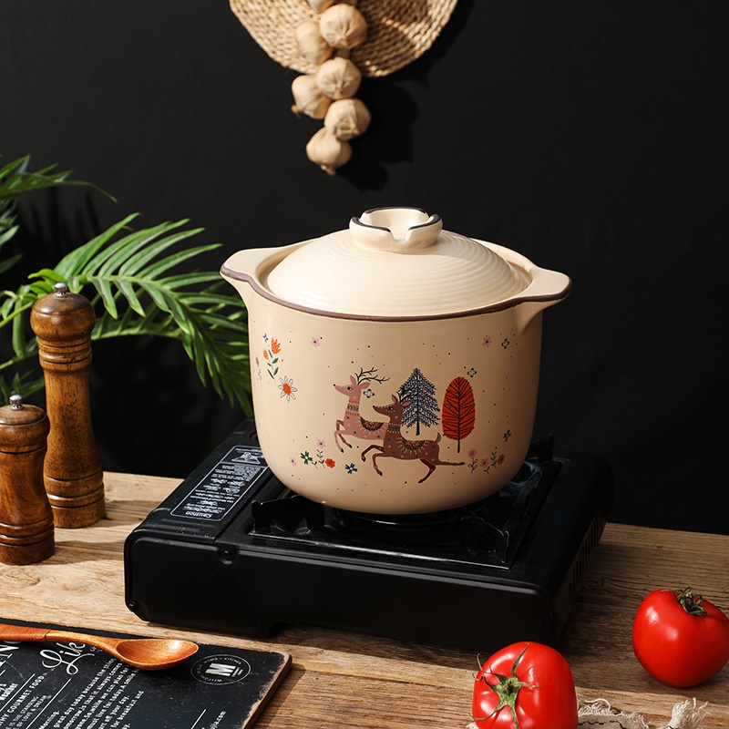 Japanese Heat-resistant Gas Stove Stew Pot Cute Bear Style Double-eared Soup Potulated Household Flower Ceramic Casserole