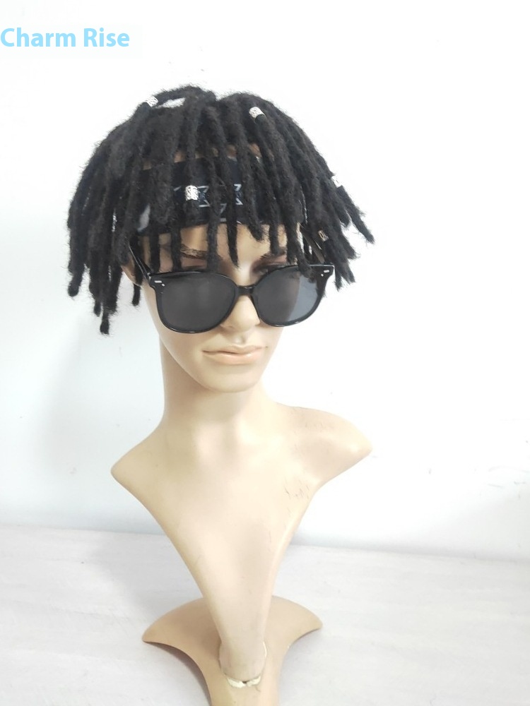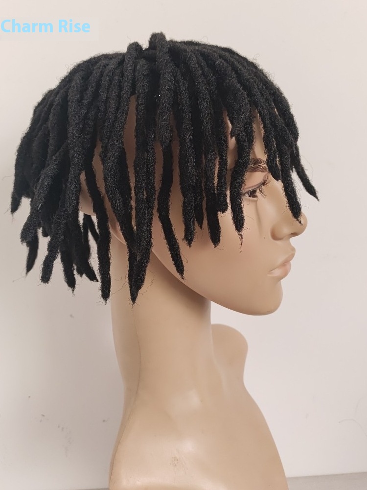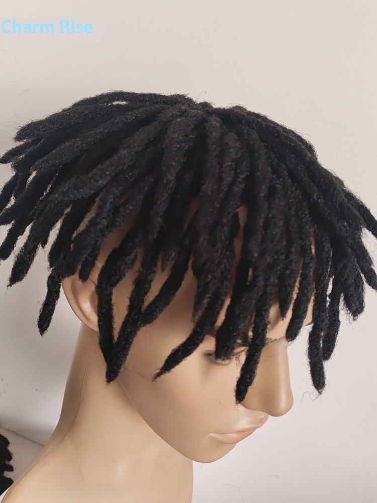 Black Perm Wig Piece European And American African Dreadlocks Foreign Trade Wig Men's Short Hair One-piece Hair Extension Handmade Hair Replacement Piece