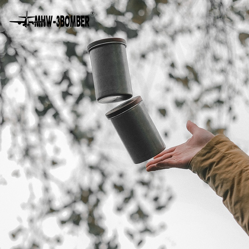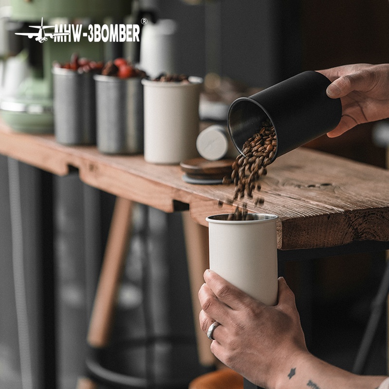 MHW-3 BOMBERBomber Stainless Steel Coffee Bean Sealed Jar Solid Wood Cover Storage Jar Storage Bottle500 ML