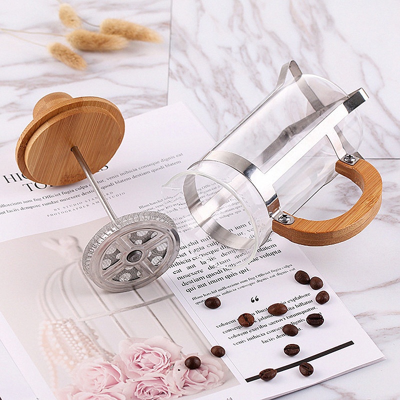 Bamboo Wood High Borosilicate French Press Hand Pressure Coffee Pot Tea Maker Home Teapot Flower Teapot