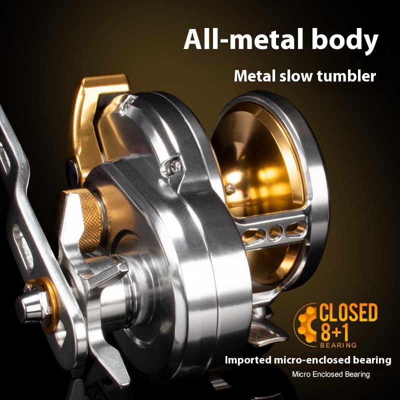 Slow-shaking Iron Plate Wheel8+1 Full Metal Trolling Drum Fish Wheel Offshore Boat Fishing Line Wheel Anti-seawater Iron Plate Drum Wheel