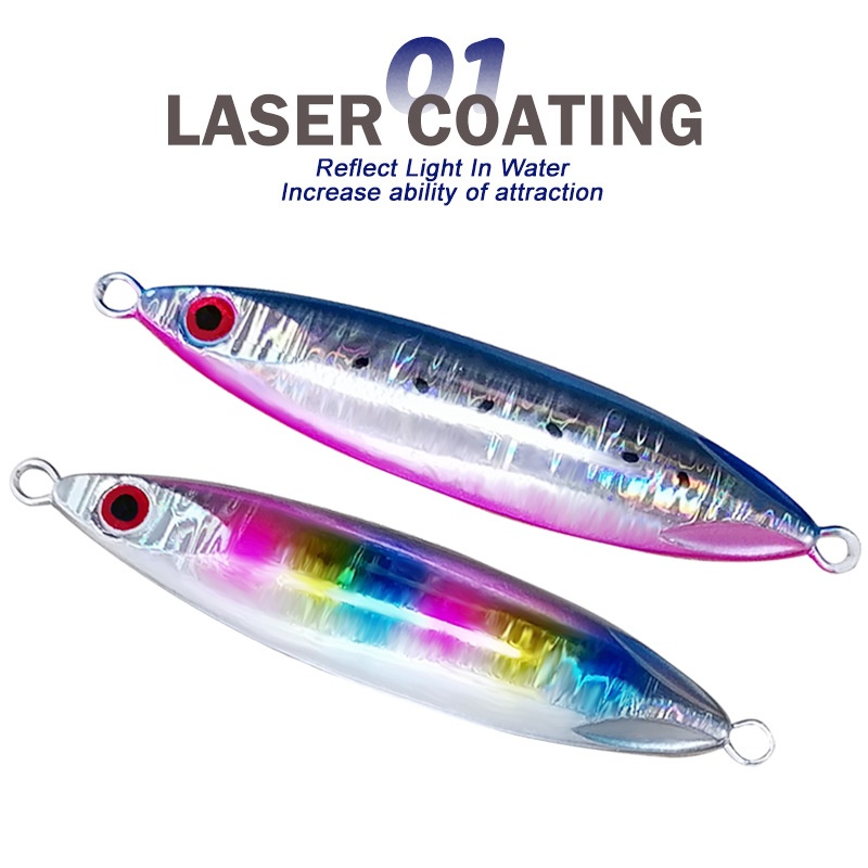 Japanese Iron Plate Sea Fishing Laser Slow Sinking Iron Plate Lead Fish Bait80g-150g Offshore Boat Fishing Spanish Mackerel Yellow Tuna Golden Tuna
