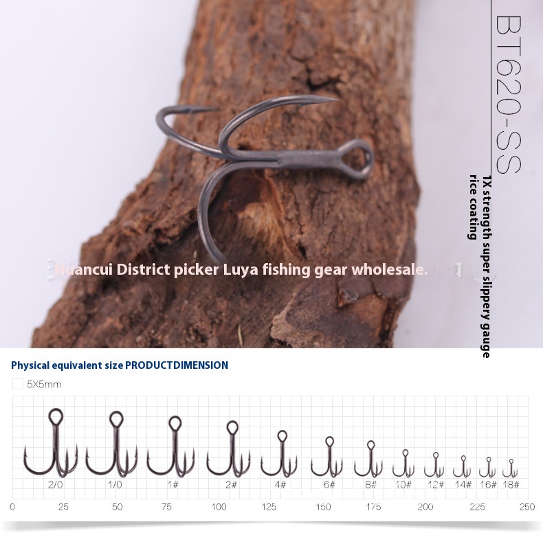 BKKBlack King Kong BT621 Black Nickel Three Hooks Sea Fishing Lure Anchor Hook Barbed Fish Hook Strengthened Three-pronged Hook