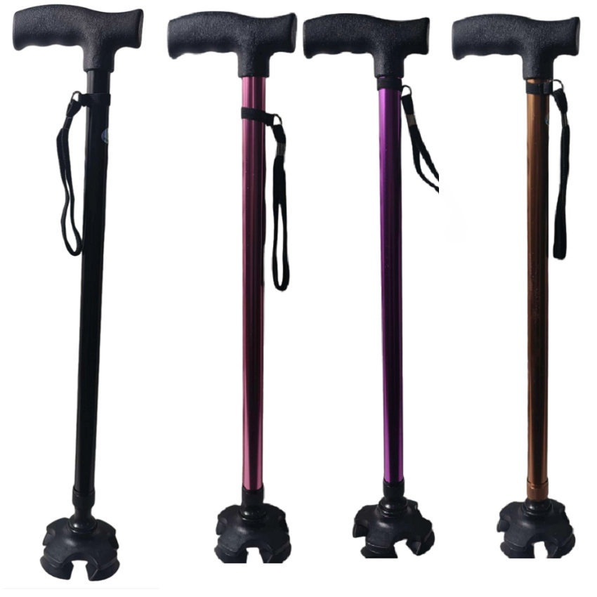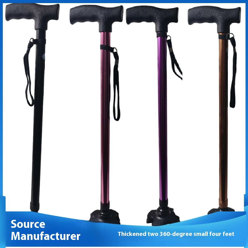 Thickened Aluminum Alloy Retractable Four-legged Cane,Adjustable Height Elderly Cane,Non-slip Elderly Trekking Cane