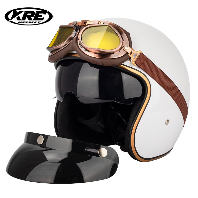 Foreign Trade Electric Car Retro Harley Personality Half Helmet Men And Women Four Seasons Helmet With Goggles Set Riding Helmet