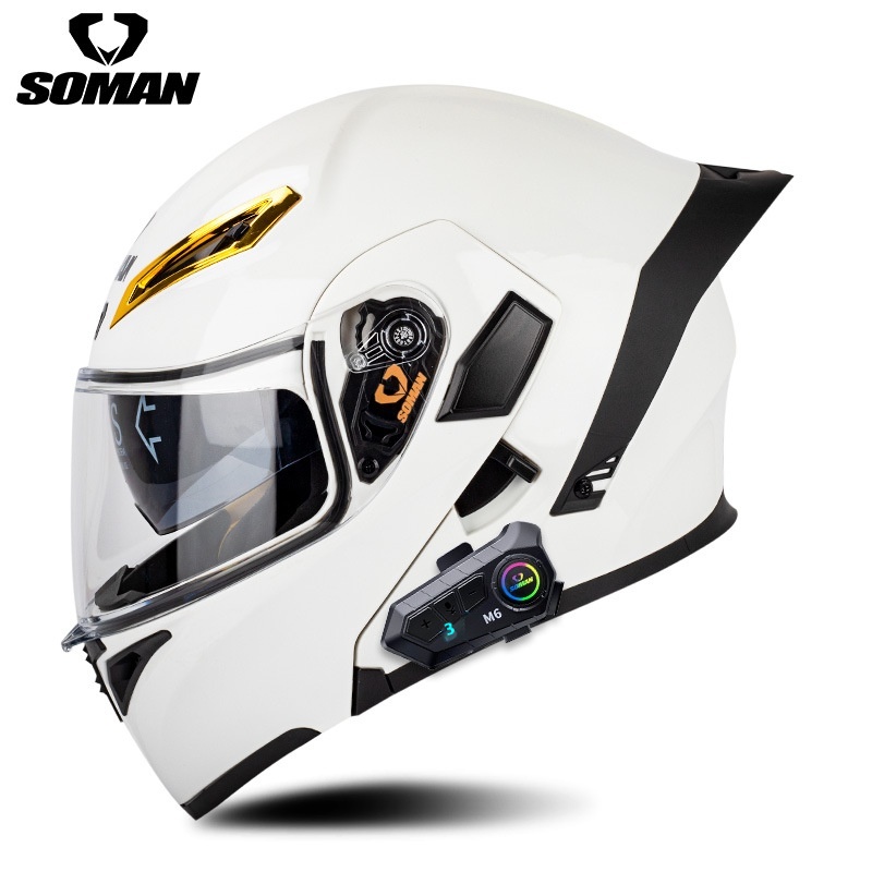 SOMANMotorcycle Bluetooth Helmet Double Lens Flip-Up Helmet Cycling Four Seasons Full Face Helmet SM955-SBluetooth Helmet3 C