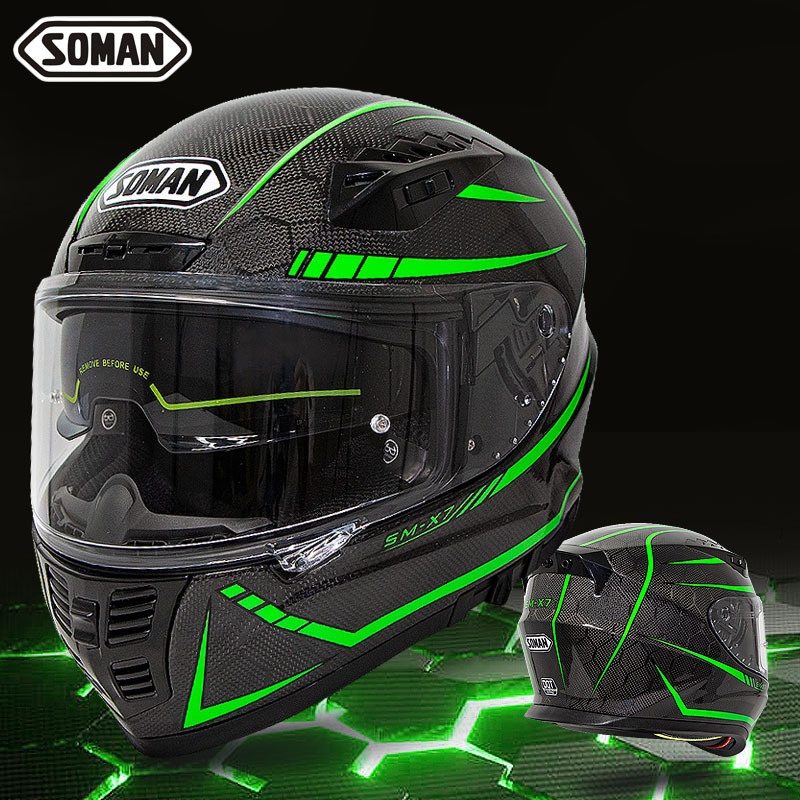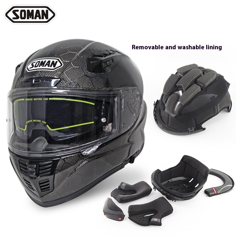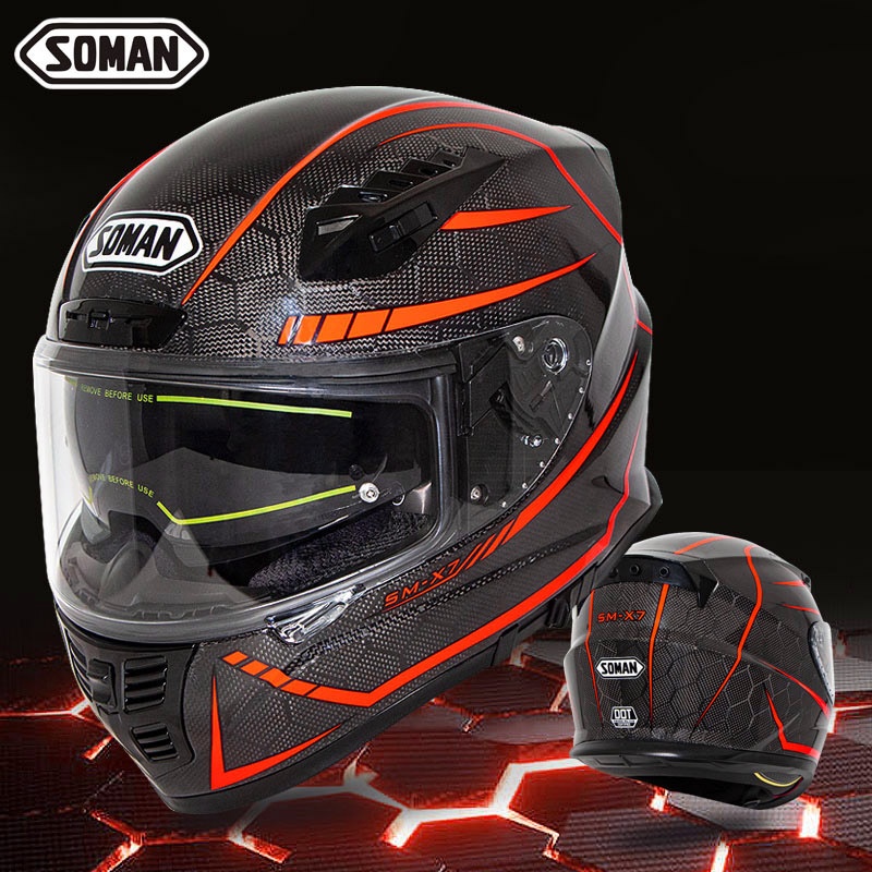 SOMANMotorcycle Helmet Double Lens Snake Pattern Carbon Fiber Helmet Outdoor Men And Women Motorcycle Riding Full Helmet SM-X7