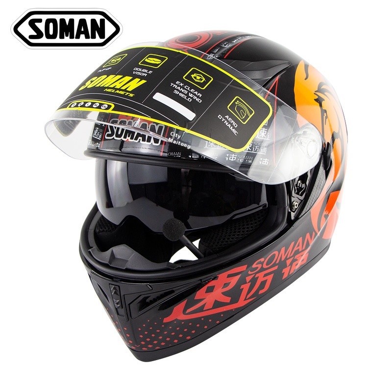 Foreign Trade Special SOMAN960 Electric Vehicle Dual Lens Riding Full Helmet HDStereo Bluetooth Helmet