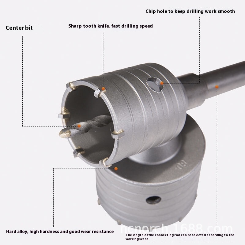 Electric Hammer Head Electric Hammer Wall Hole Opener Concrete Hole Drill Through Wall Hollow Drill Bit Air Conditioner Hole Drill