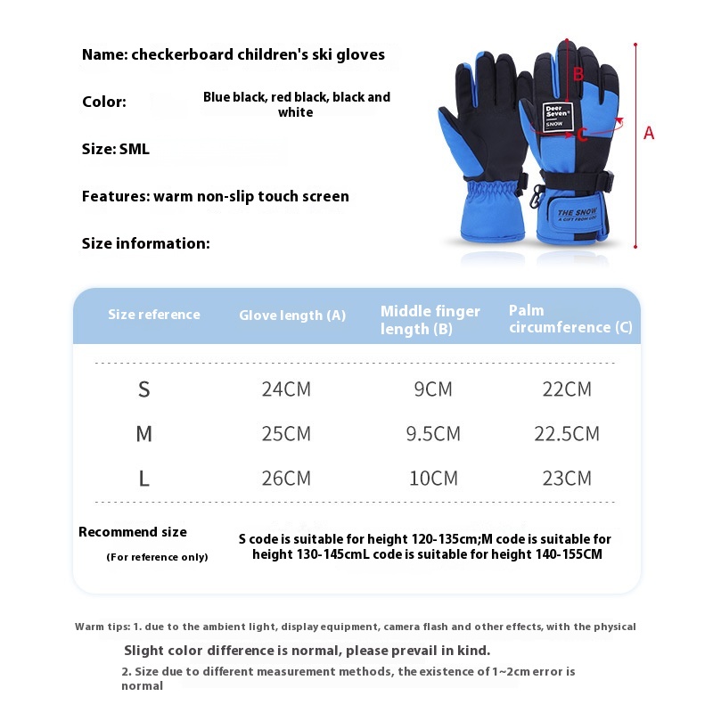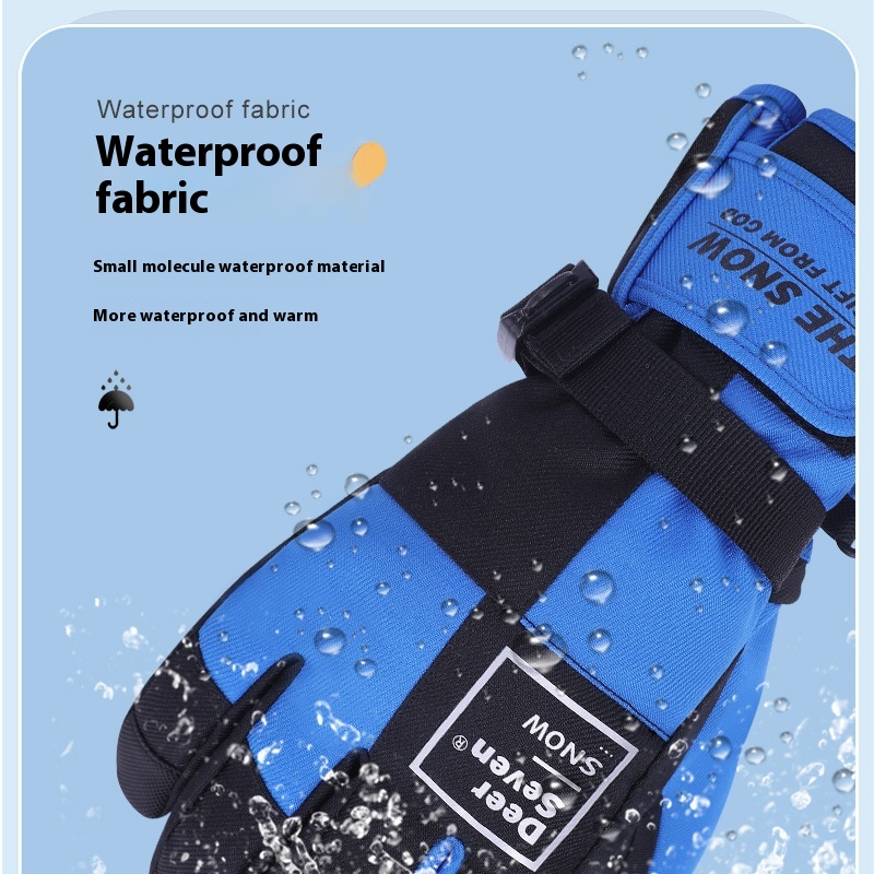 Children's Ski Gloves Students Five-finger Waterproof Cycling Waterproof Warm Cotton Thickened Gloves In Stock