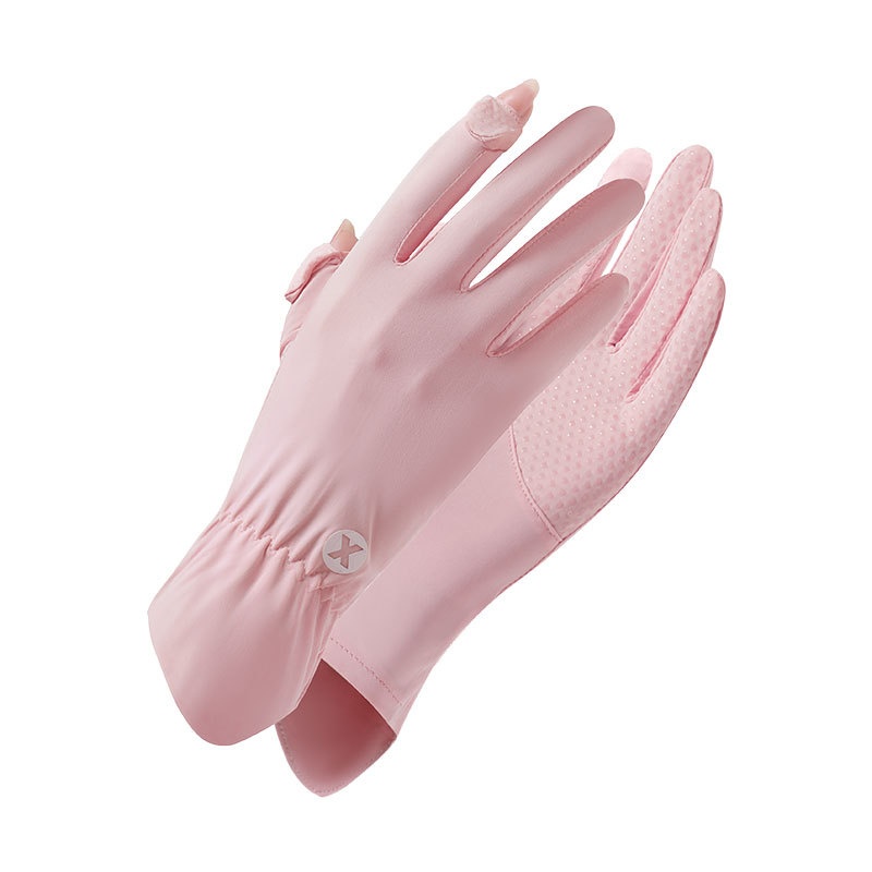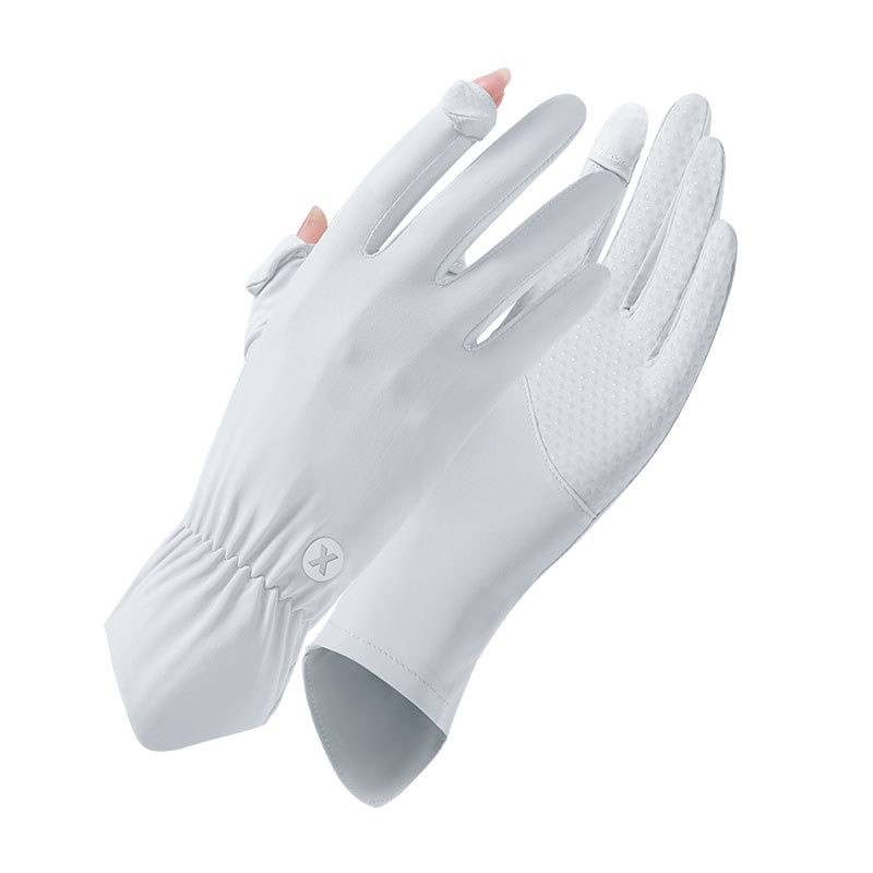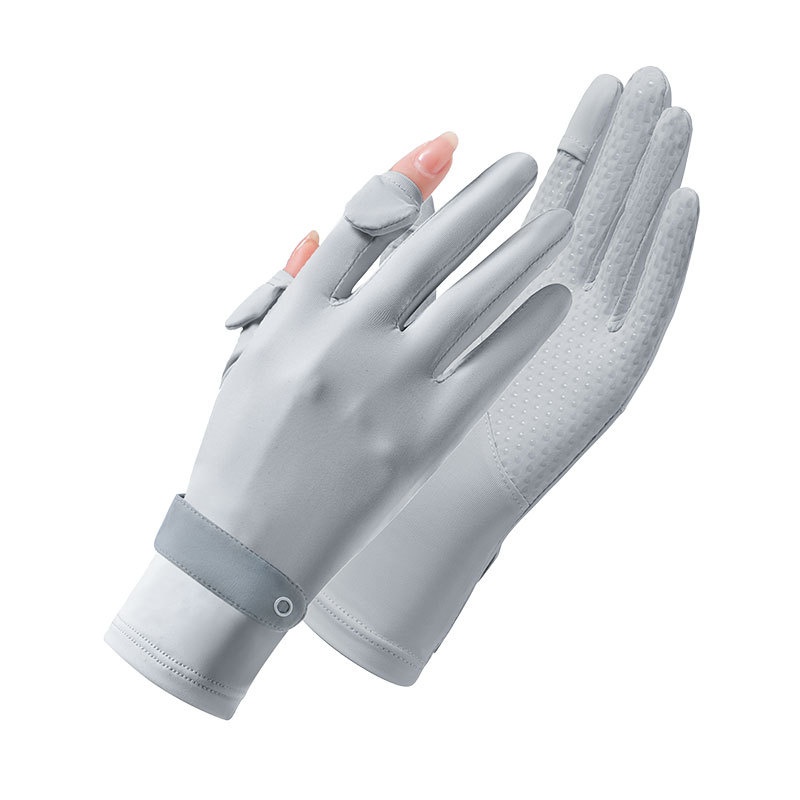 Summer Sun Protection Gloves For Women UVProtection Thin Ice Silk Cool Breathable Driving And Cycling Non-slip Exposed Two-finger Gloves