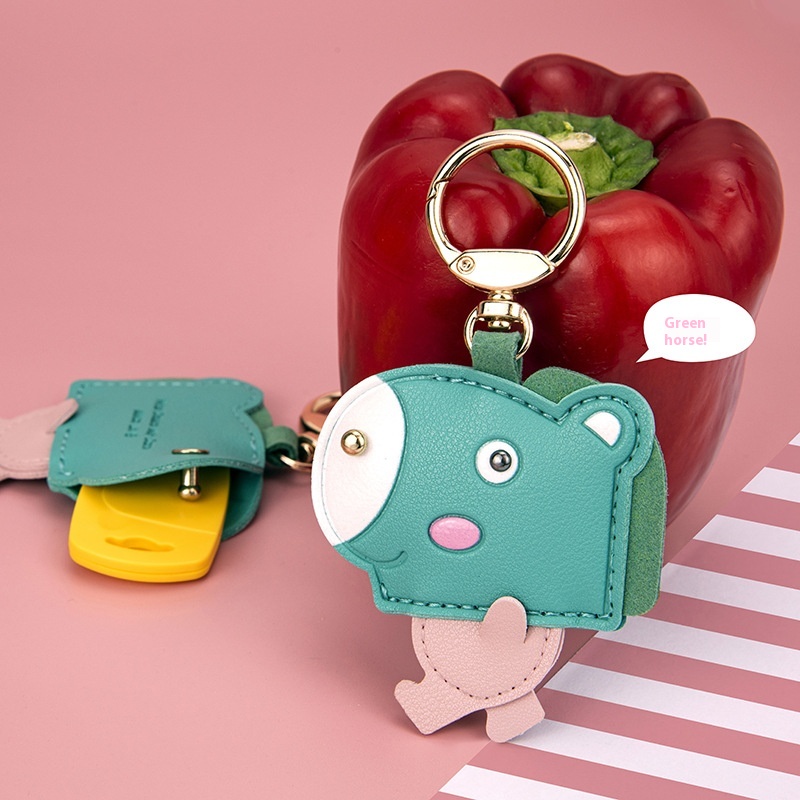 Garlic Green Horse Access Card Holder Keychain Funny Garlic Green Horse Creative Water Drop Card Holder Leather Key Pendant