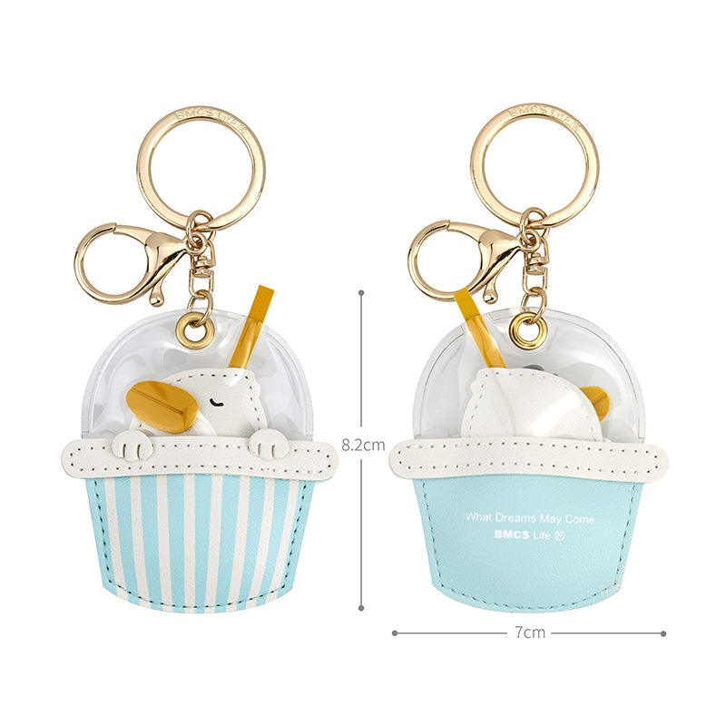 Bamen Chongshe Milk Tea Cup Small Animal Keychain Fresh And Cute Leather Girl Keychain Pendant