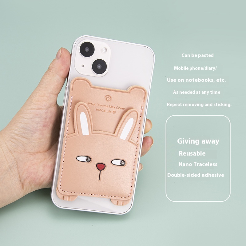 Genuine Original Cute Animal Creative Leather Mobile Phone Back Sticker Card Holder Fashionable Portable Card Holder(with Free Traceless Sticker)