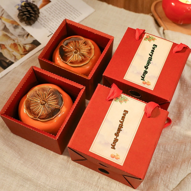 Persimmon Scented Candle Everything Goes Well Ceramic Candle Gift Box Wedding Birthday Fragrance Year Souvenir