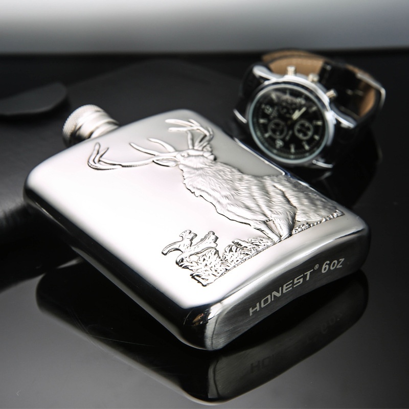 Baicheng Genuine304 Stainless Steel Wine Flask Outdoor Portable6 Ounces Pure Handmade Fine Wine Set With Funnel