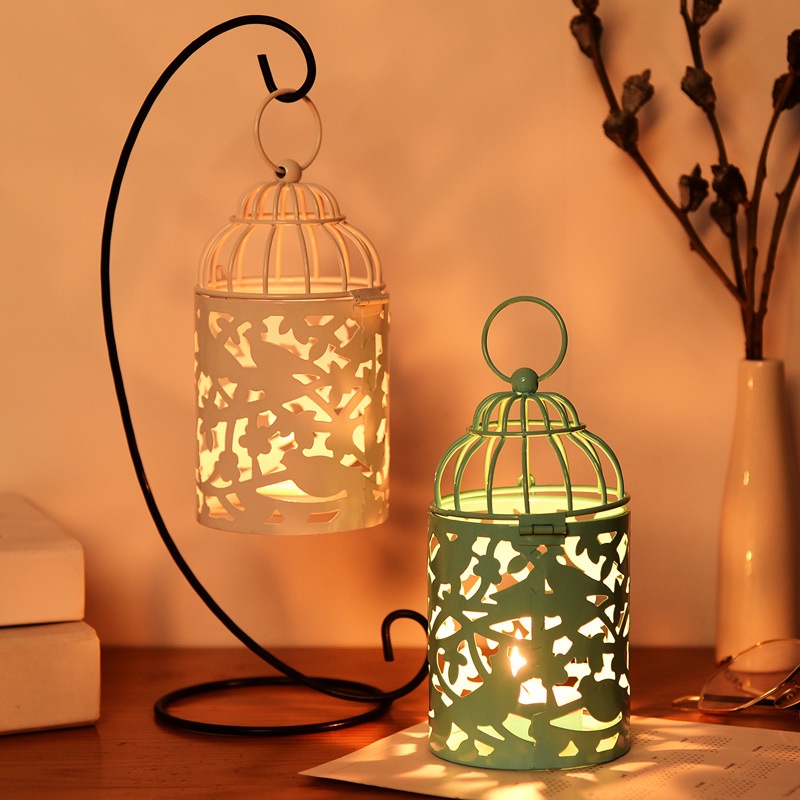 Hollow Pattern Bird Cage Candle Holder Creative Home Furnishings European Style Decoration Iron Art Can Hold Candles Metal Candle Holder