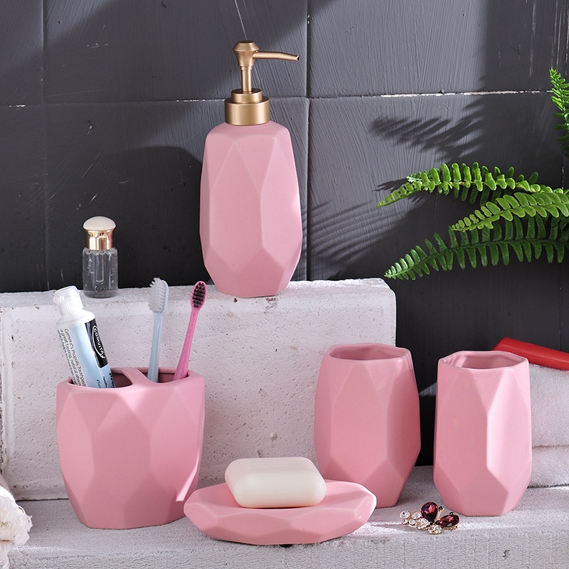 Nordic Diamond Pattern Ceramic Bathroom Five-piece Set Creative Bathroom Toiletries Gift Set Toothbrush Holder