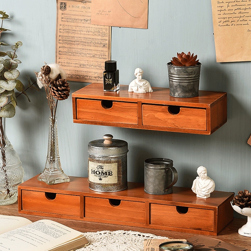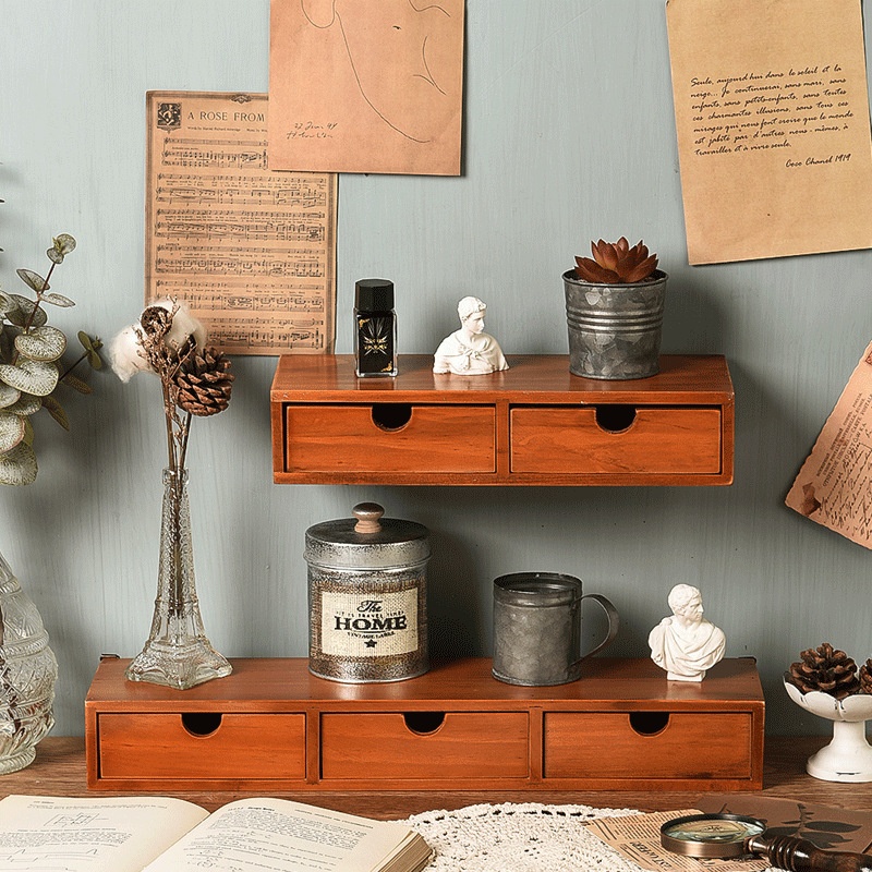Retro Creative Desktop Wall Storage Office Sundries Multi-layer Storage Cabinet Zakka Wooden Jewelry Storage Cabinet