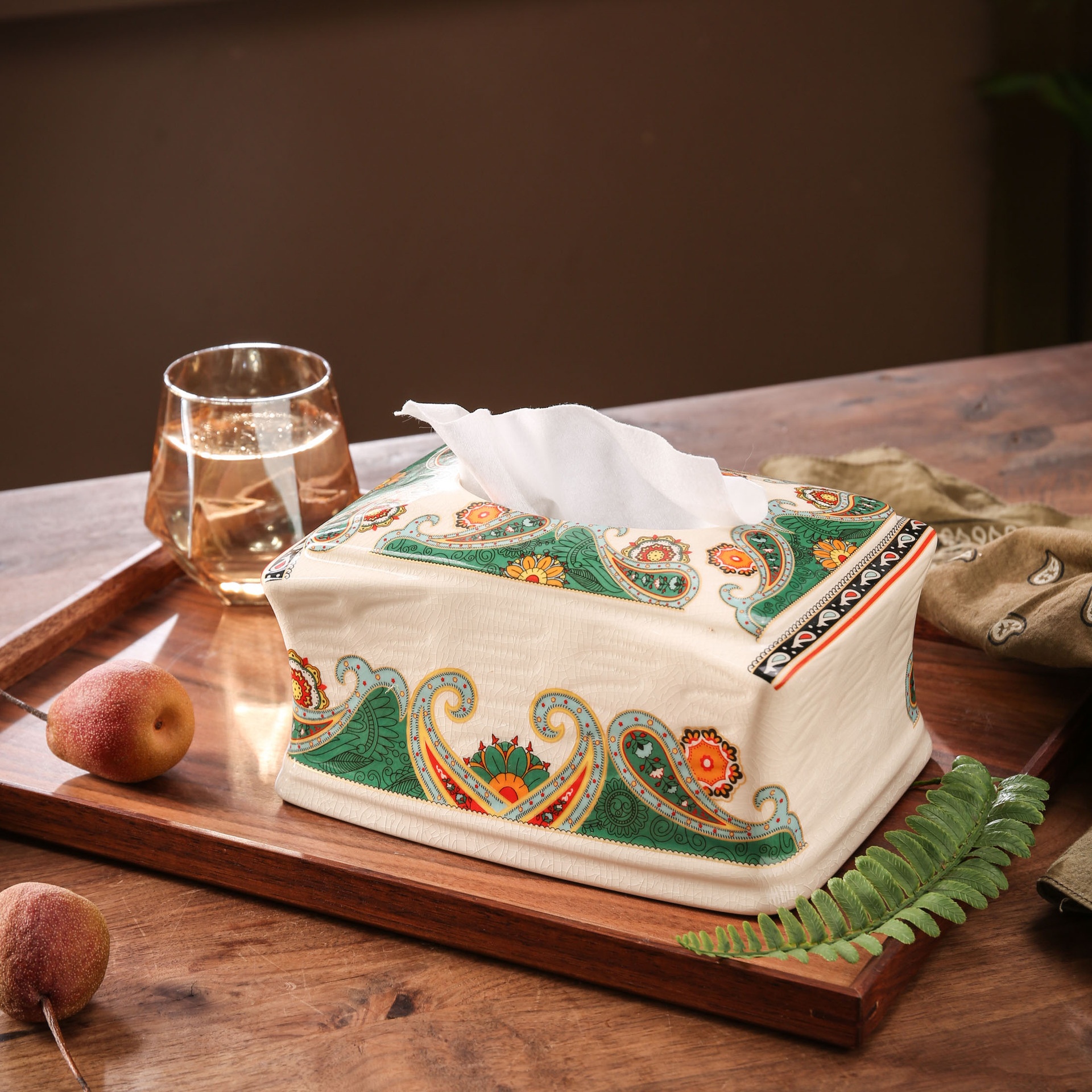 European Retro Ceramic Tissue Box Living Room Coffee Table Creative American Style Tissue Box Household Tissue Box
