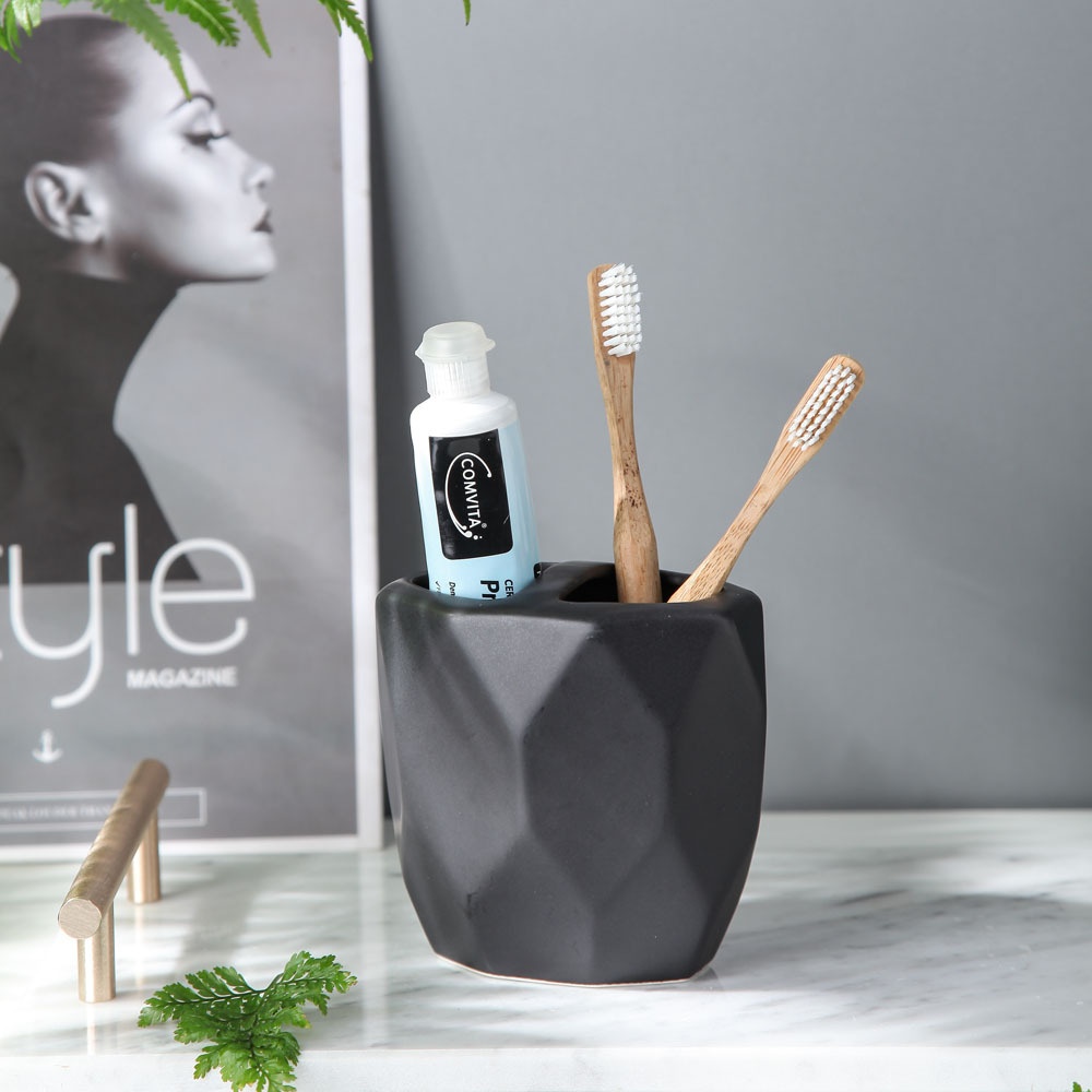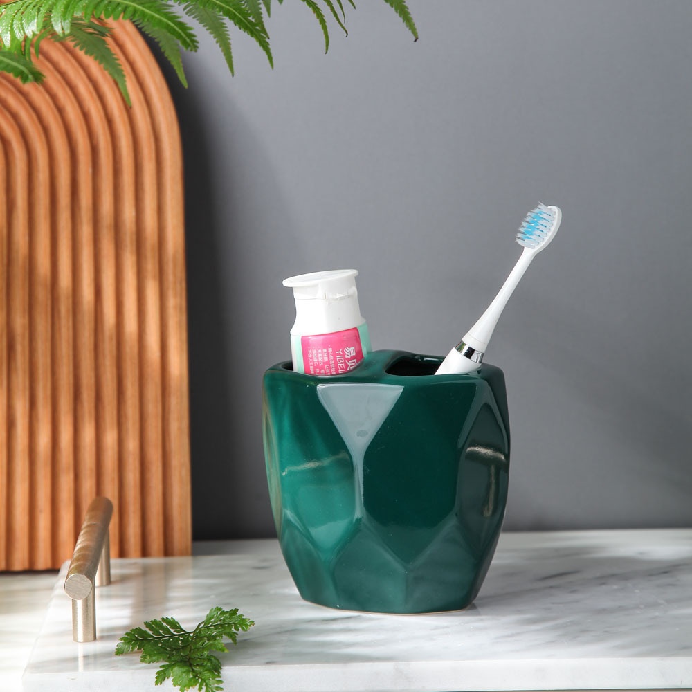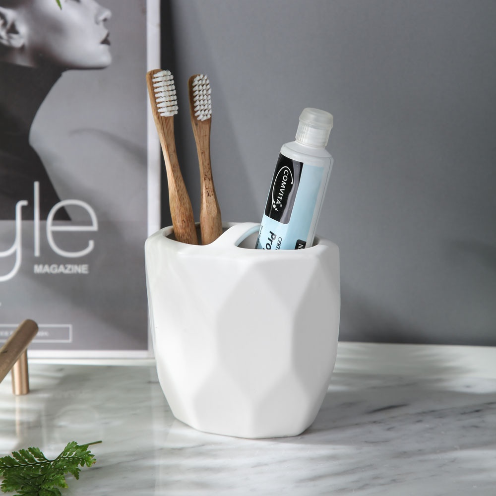 Ready-to-use Nordic Stylish Minimalist Style Ceramic Toothbrush Holder Diamond Pattern Toothbrush Holder Bathroom Appliances