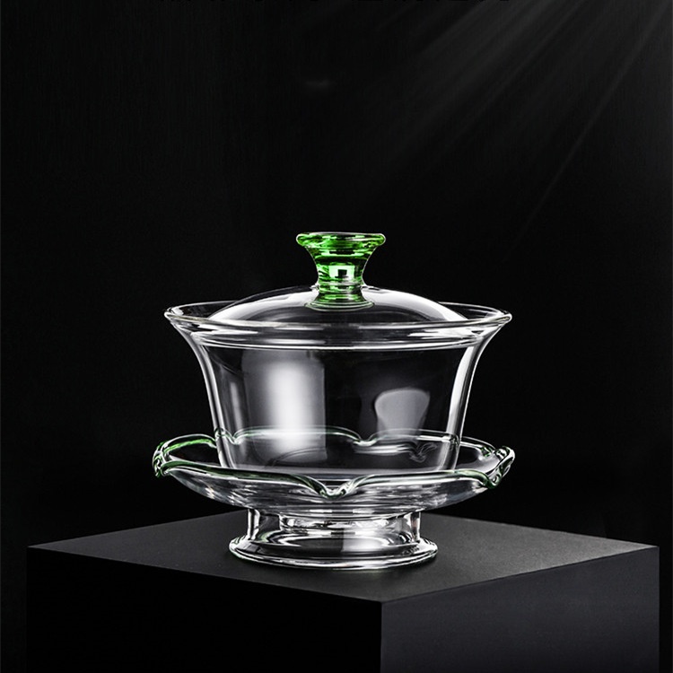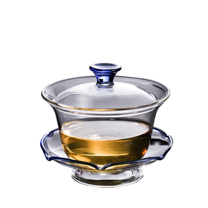 Heqi Qinlian Covered Bowl Glassulation Explosion-proof Sancai Tea Bowl Colorful Handmade Thickened Tea Set Tea Cup
