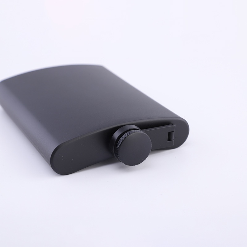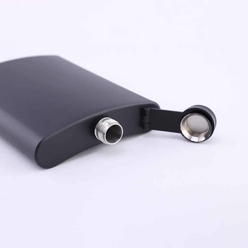 Spray Painted Black Matte All Black8 Oz Stainless Steel Hip Flask Portable Set For Outdoor Use