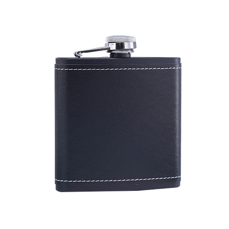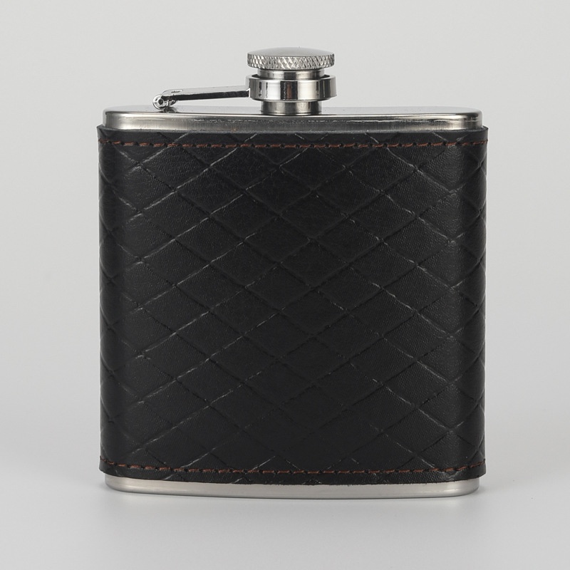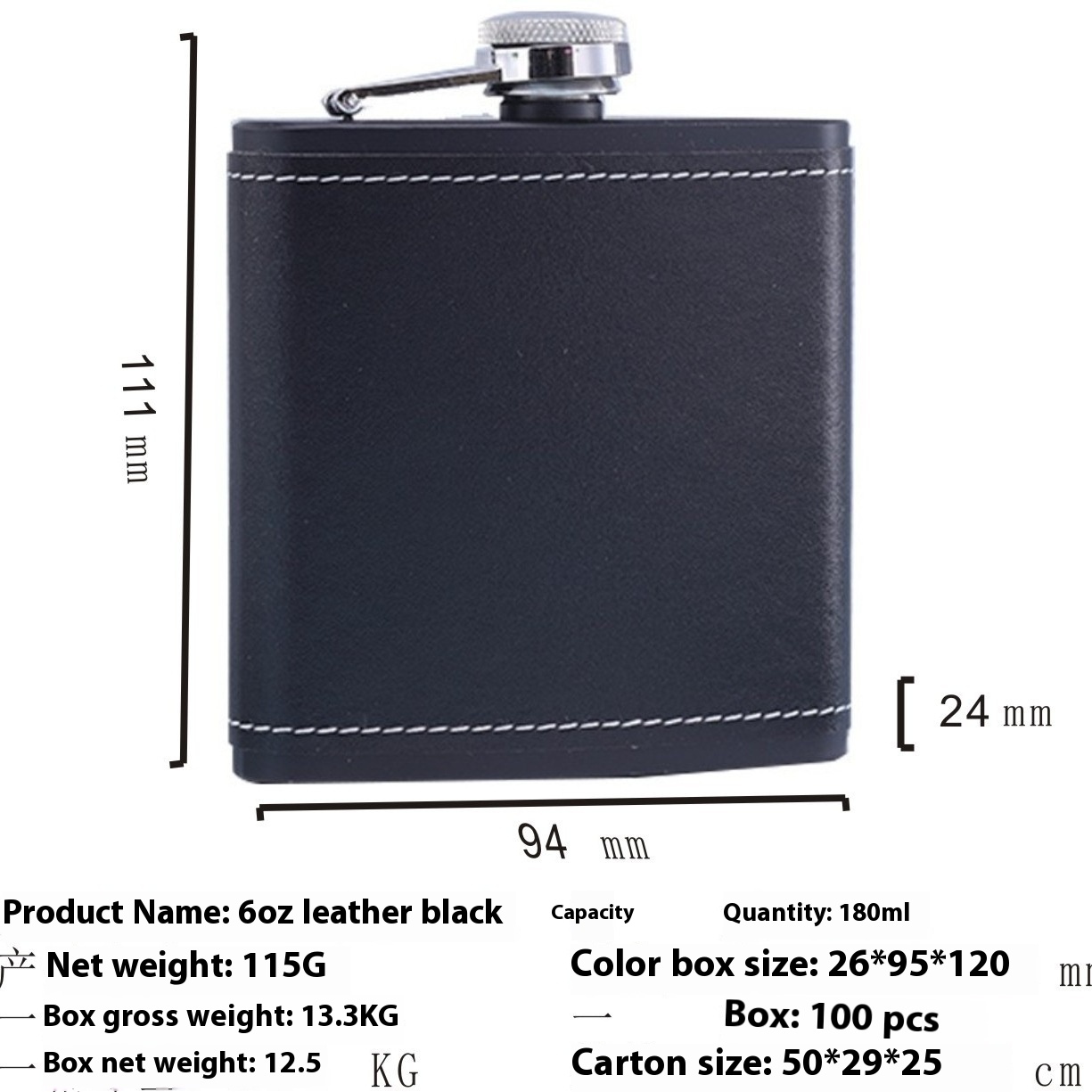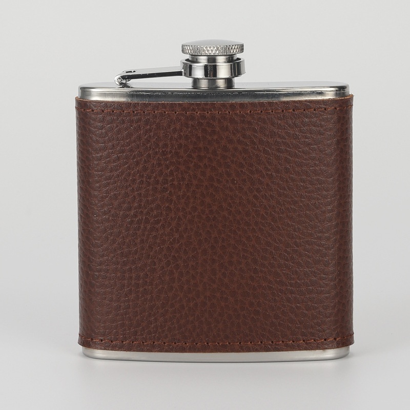 SRussian Stainless Steel Hip Flask304 Outdoor Portable Two-layer Cowhide Black Brown